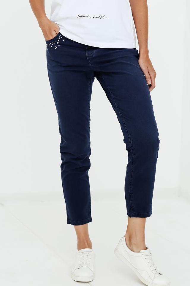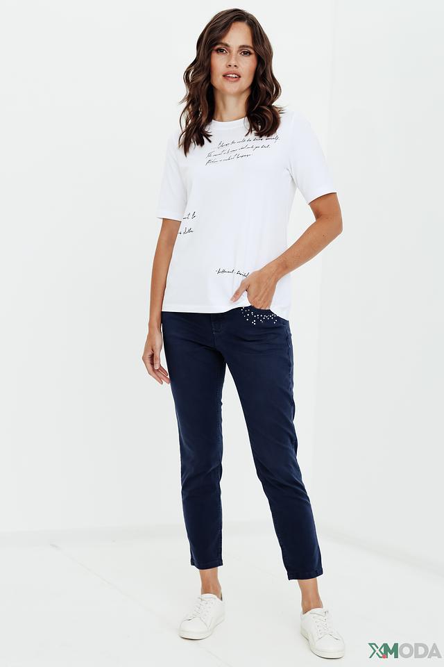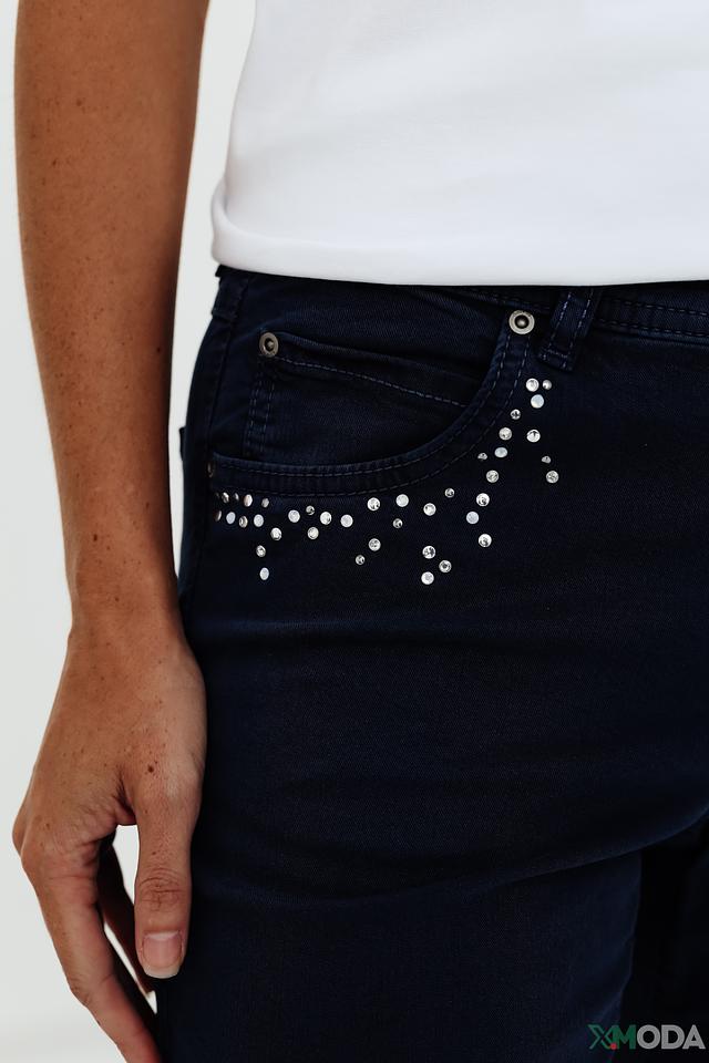 Особенностью этих джинсов является деликатный декор из страз на задних карманах, придающий им изысканный вид. Крой джинсов обеспечивает комфортную посадку по фигуре, а добавление эластана в состав ткани гарантирует свободу движений.