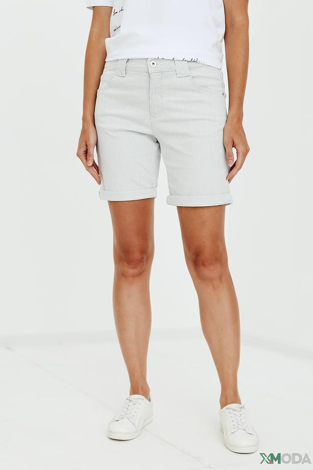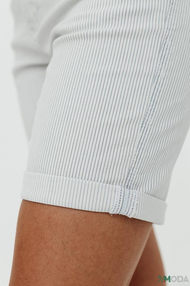 Белые шорты Angels в светлую полоску — удобная и стильная модель для повседневной носки. Шорты прямого кроя с застежкой на пуговицу и молнию, выполнены из хлопка с добавлением полиэстера и эластана. Состав: хлопок 89%, полиэстер 8%, эластан 3%