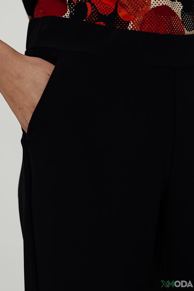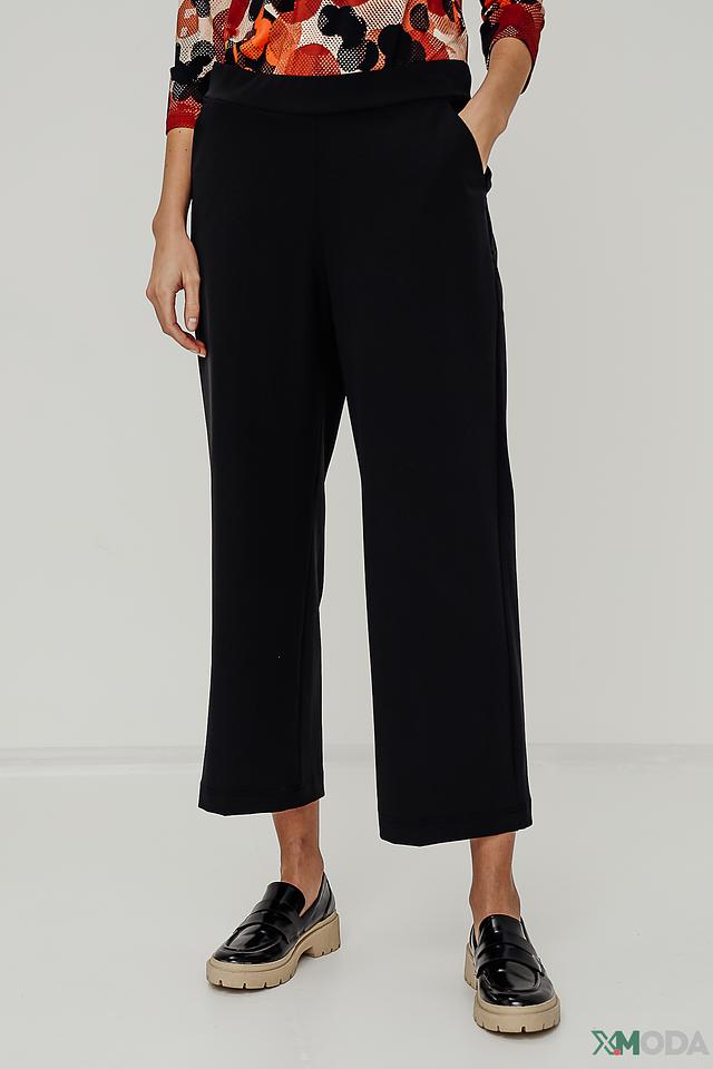 Брюки имеют прямой крой и длину кюлотов, что придает им современный и модный вид. Высокая посадка подчеркивает талию и создает стройный силуэт. Материал – сочетание полиамида (88%) и эластана (12%), обеспечивающее комфорт в носке и хорошую посадку по фигуре.