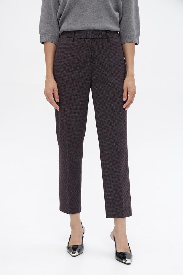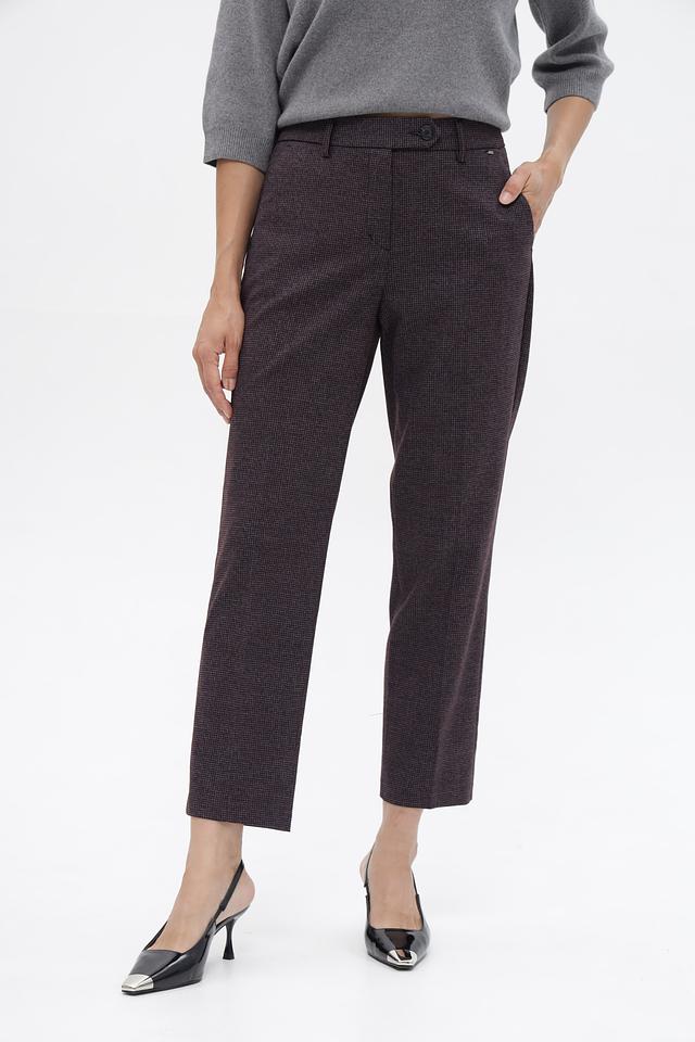 Стильные брюки от Anna Montana в тёмно-бордовой клетку. Изготовлены из полиэстера с добавлением вискозы и эластана для комфорта и хорошей посадки. Состав: полиэстер 64%, вискоза 34%, эластан 2%