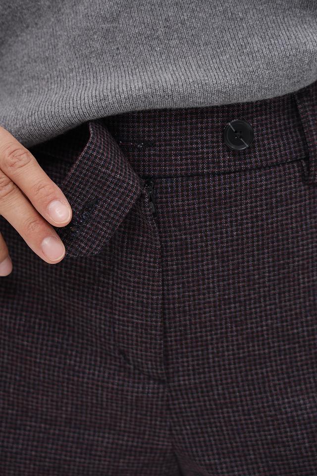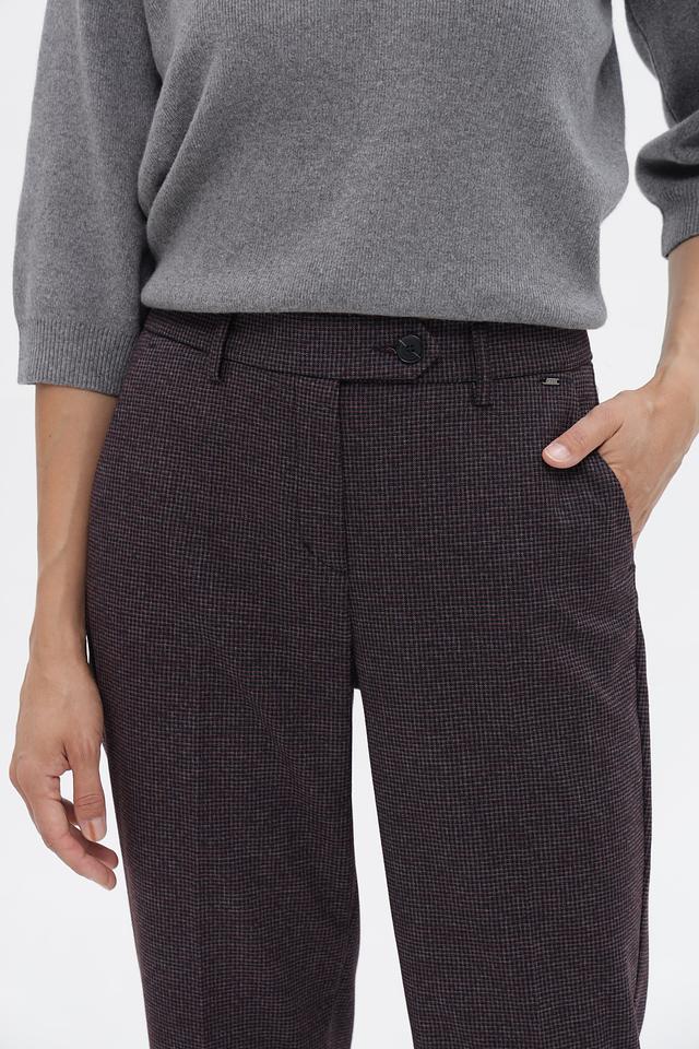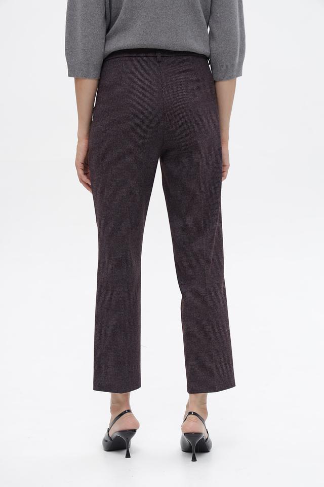 Представляем элегантные брюки от бренда Anna Montana, выполненные в классическом крое. Модель отличается стильным клетчатым принтом в тёмно-бордовой гамме, который придаёт образу изысканность.
