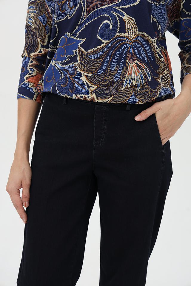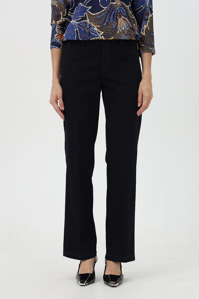 Эти брюки отлично сочетаются с блузками, рубашками и жакетами, позволяя создавать стильные и элегантные комплекты. Они идеально подойдут для работы, деловых встреч и повседневной носки. Тёмно-синий цвет придаёт образу сдержанность и благородство.