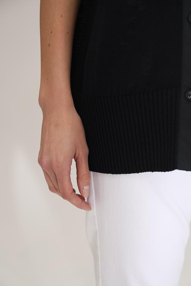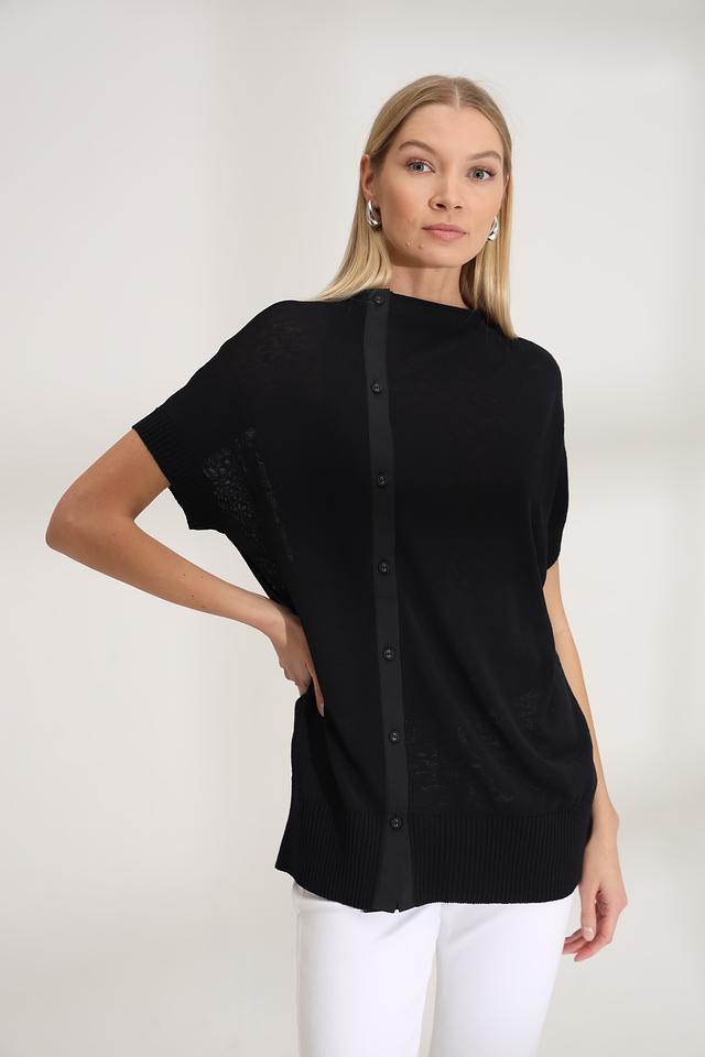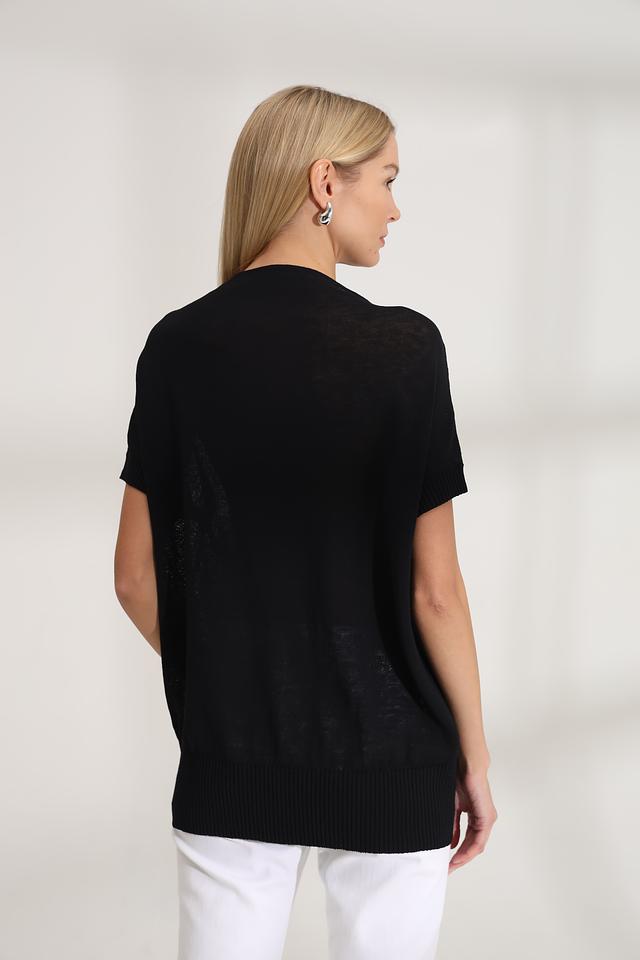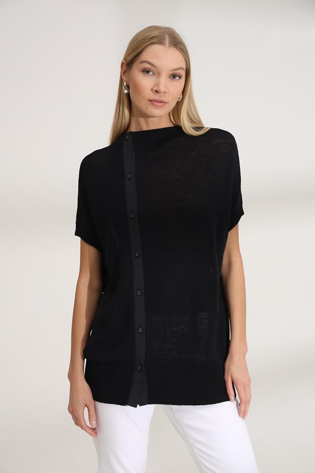 Чёрный пуловер от Annette Gortz с короткими рукавами и вертикальной планкой на пуговицах. Изготовлен из сочетания льна и нейлона, обеспечивающего комфорт и лёгкость в носке. Стильный и лаконичный дизайн. Состав: лен 62%, нейлон 38%