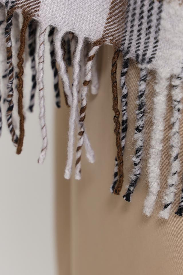 Шарф дополнен длинной бахромой по краям, что придает ему завершенный и стильный вид. Он идеально подойдет для прохладной погоды, согревая и защищая от ветра. Этот аксессуар станет отличным подарком для себя или близких.