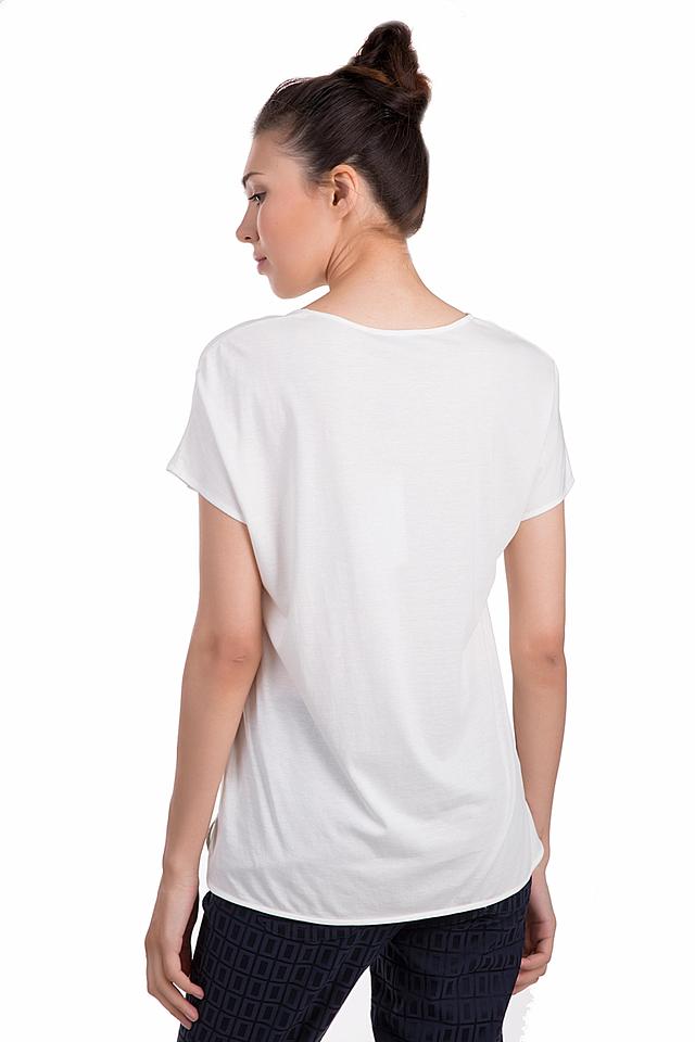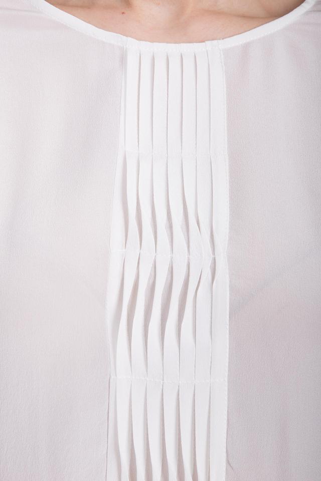 Уточенная женская блуза Apanage белого цвета. Это изделие было выполнено из натурального шелка. Модель предназначена для того, чтобы носить летом. Она дополнена несколькими складками посередине. Рукава у блузы короткие. Это изделие свободного кроя. Такая блузка отлично подойдет для вечернего выхода. Сочетается как с юбками, так и с брюками.