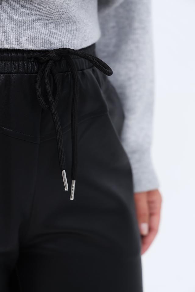 Чёрные брюки от Apart из экокожи — стильное и комфортное решение для создания модных образов. Модель выполнена с высокой посадкой и эластичным поясом, дополненным шнурком. Состав: полиэстер 50%, полиуретан 50%