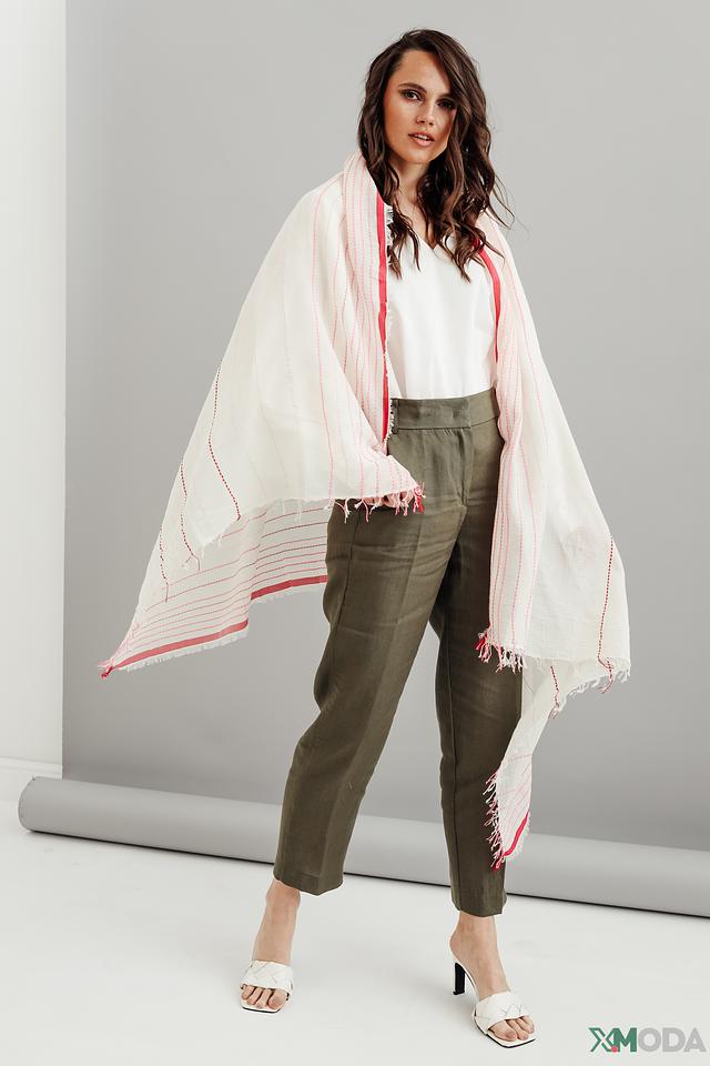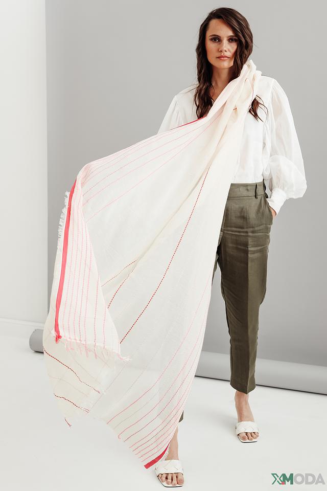 Нежная полоска и легкий материал делают этот шарф универсальным дополнением к любому гардеробу. Он прекрасно сочетается с повседневной и более формальной одеждой, добавляя образу легкости и изысканности. Состав: хлопок 88%, полиакрил 7%, модал 5%.