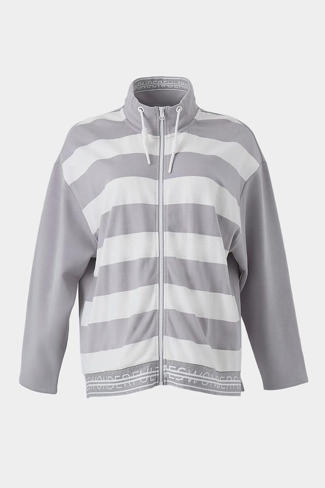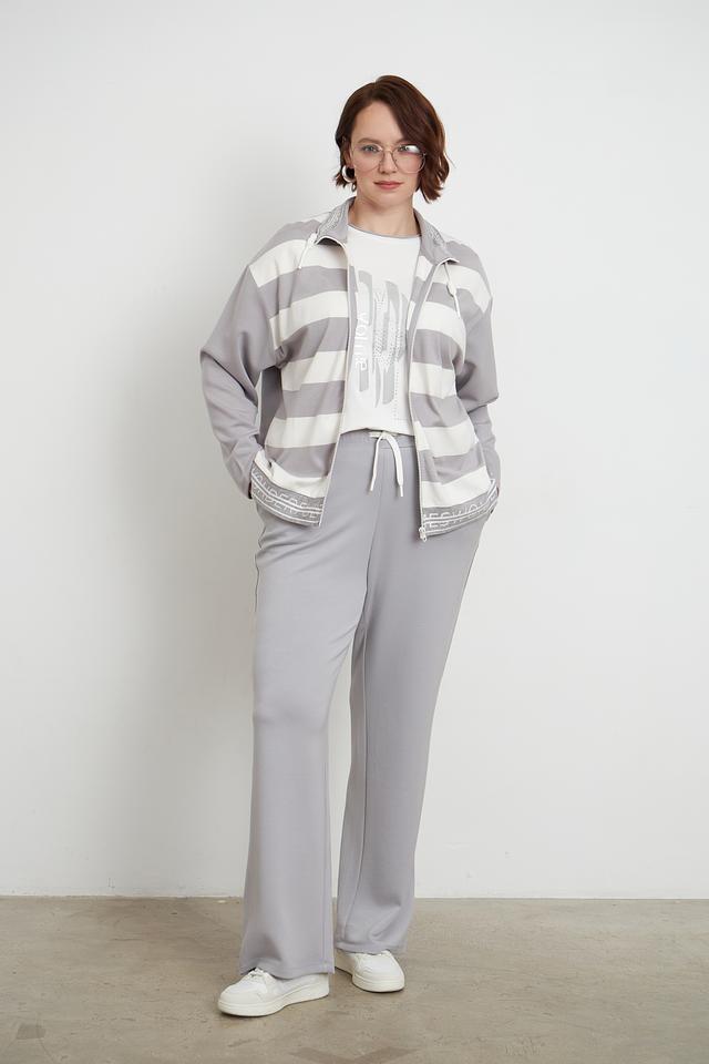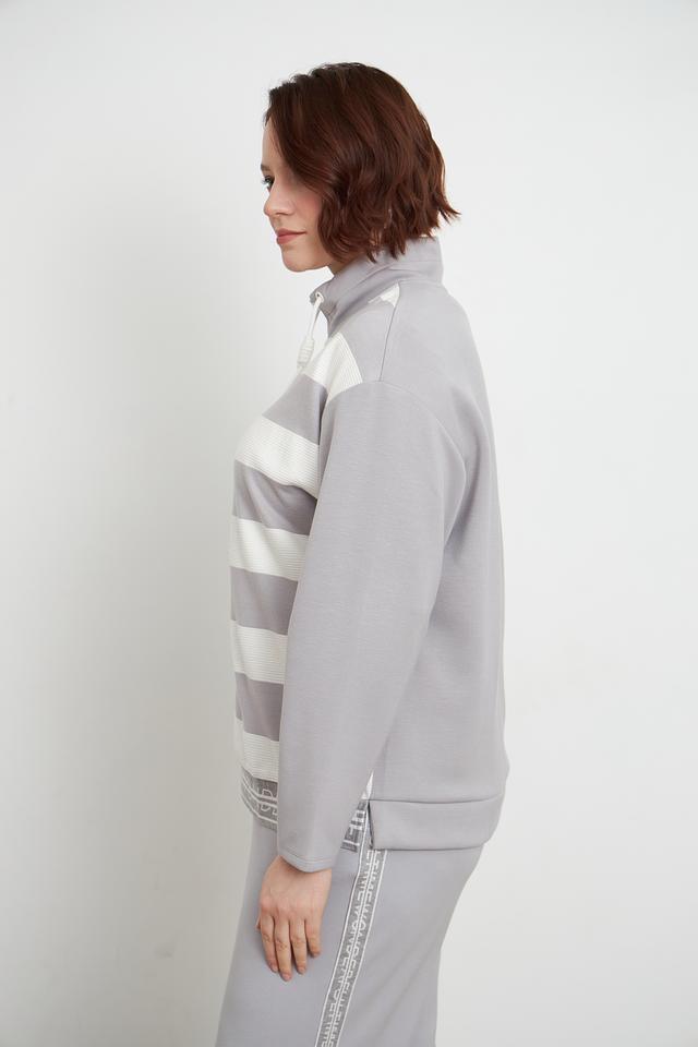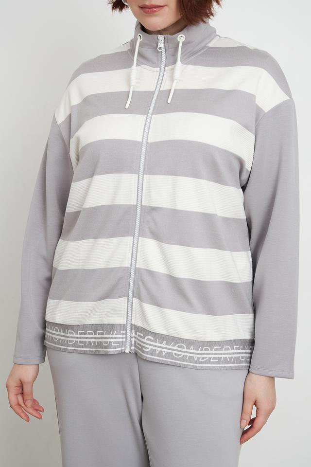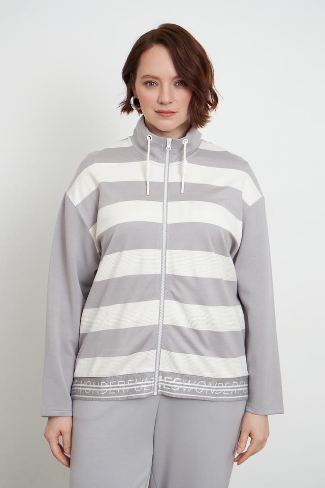 Серый жакет Lebek с полоской – это стильная и удобная модель на молнии с капюшоном. Жакет выполнен из мягкого трикотажа, который обеспечит комфорт в прохладную погоду. Состав: полиэстер 50%, вискоза 45%, эластан 5%
