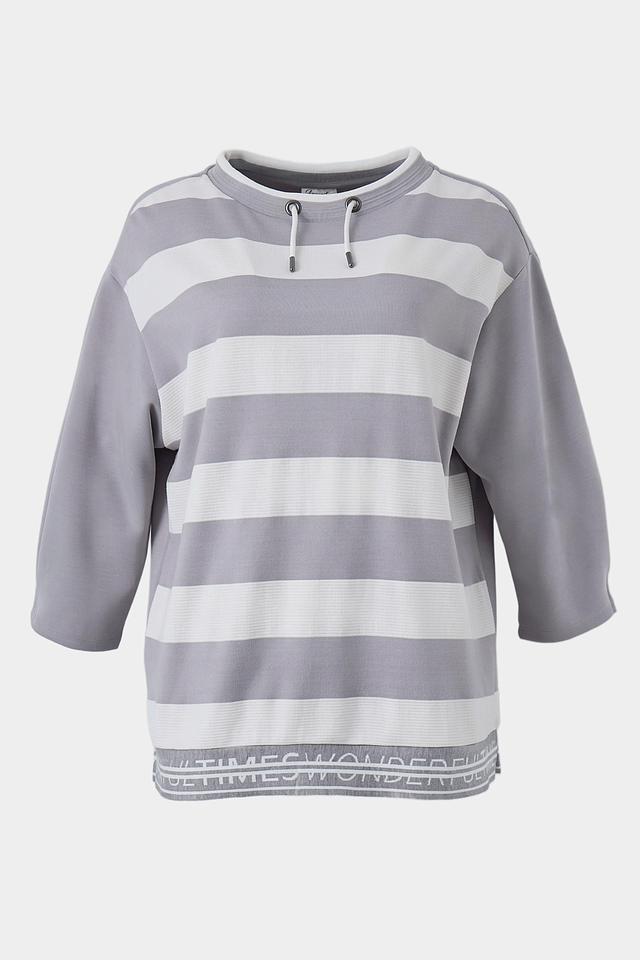Серый пуловер от Lebek с полосатым дизайном и короткими рукавами. Модель выполнена из мягкого трикотажа с добавлением вискозы и эластана, обеспечивающего комфорт и свободу движений. Состав: полиэстер 50%, вискоза 45%, эластан 5%