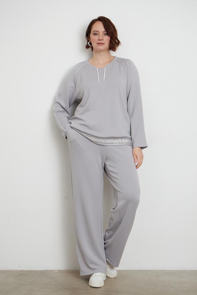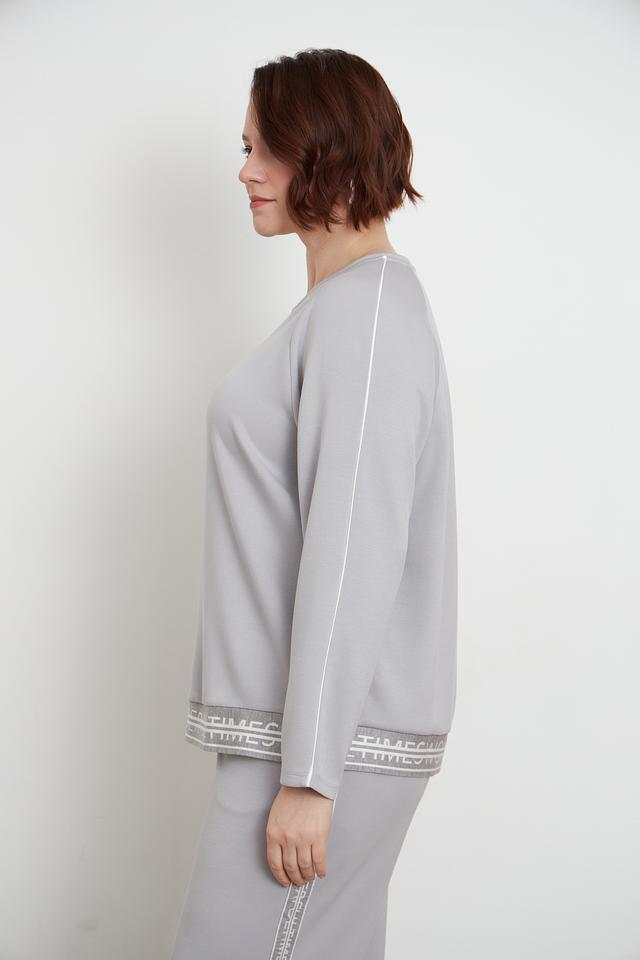 Этот пуловер от Lebek станет отличным дополнением к вашему гардеробу. Он выполнен в спокойном сером цвете и имеет удобный прямой крой. Модель дополнена белыми полосами на рукавах и по низу, что придает ей спортивный и современный вид.