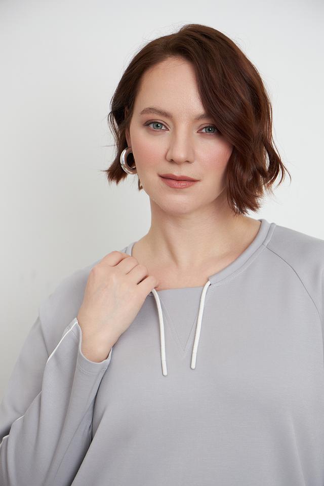 Пуловер имеет круглый вырез горловины и длинные рукава. Ткань, из которой он изготовлен, сочетает в себе 50% полиэстер, 45% вискозу и 5% эластан. Это обеспечивает изделию мягкость, приятные тактильные ощущения и хорошую посадку по фигуре.