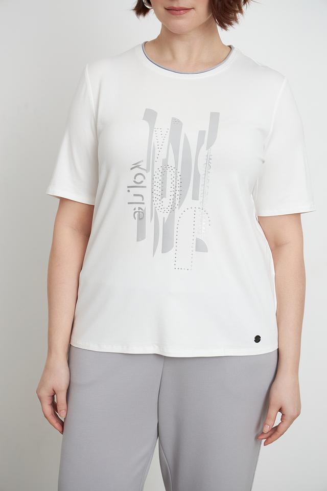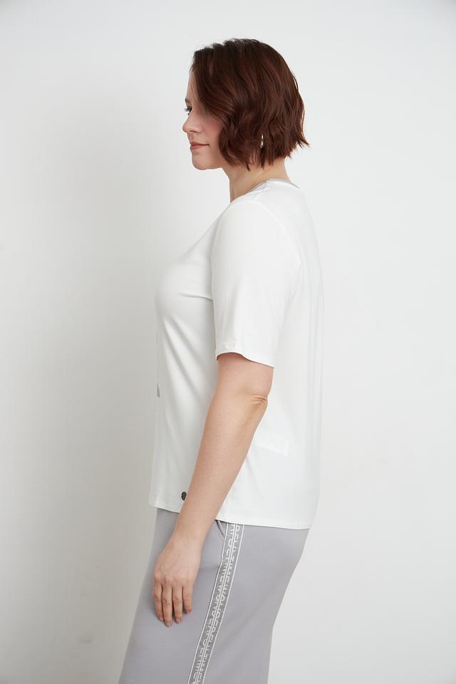 Белая футболка Lebek с оригинальным графичным принтом — стильная и комфортная модель из мягкой вискозы с добавлением эластана. Футболка имеет прямой крой и короткий рукав. Состав: вискоза 95%, эластан 5%