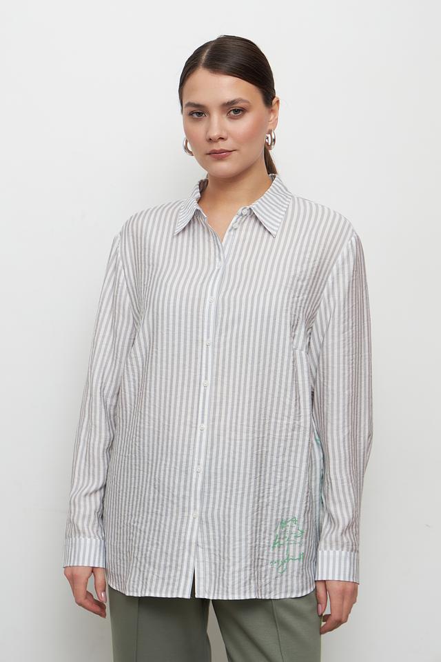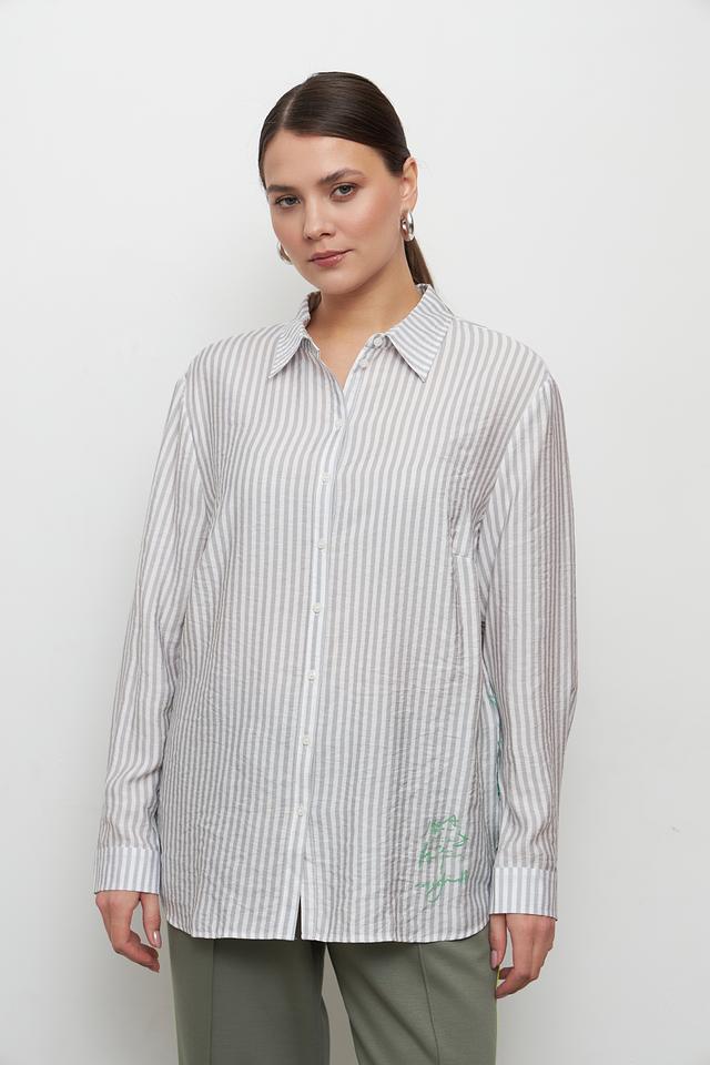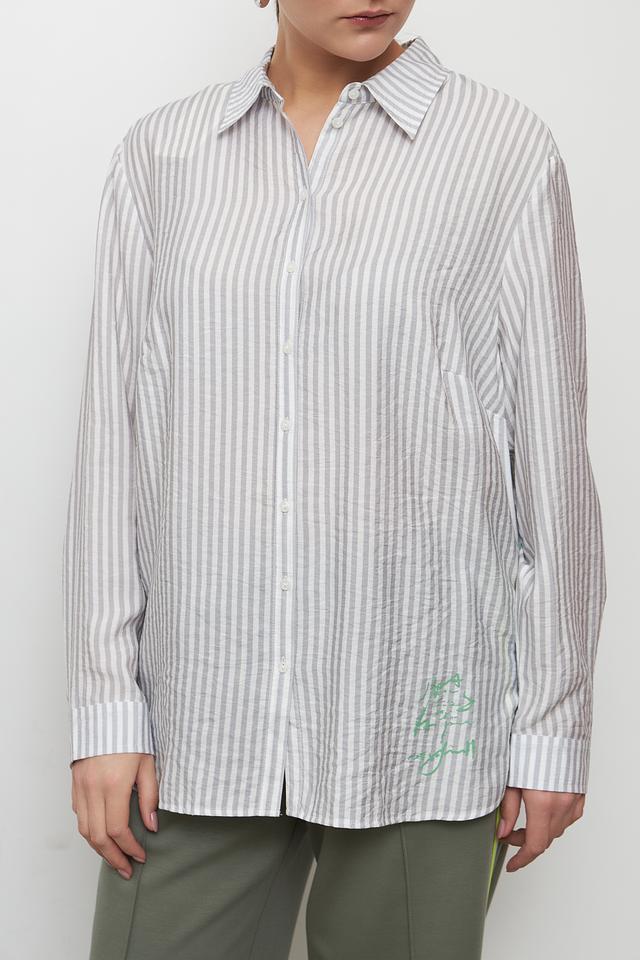 Блуза Lebek серого цвета в полоску с оригинальной вышивкой добавит образу лёгкости и свежести. Модель свободного кроя выполнена из вискозы, что обеспечивает комфорт в носке. Состав: вискоза 82%, полиамид 18%