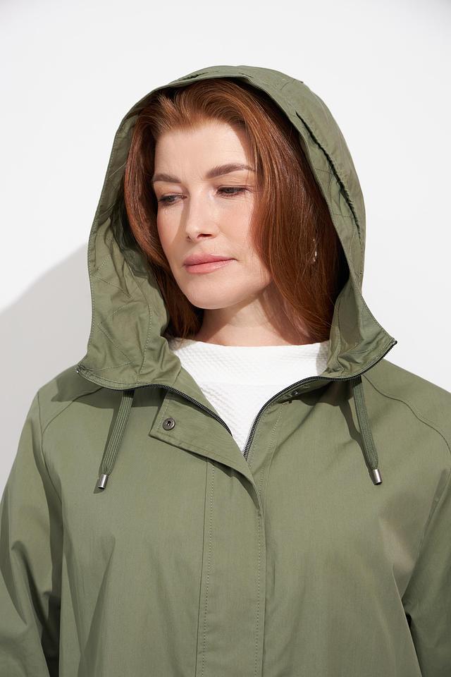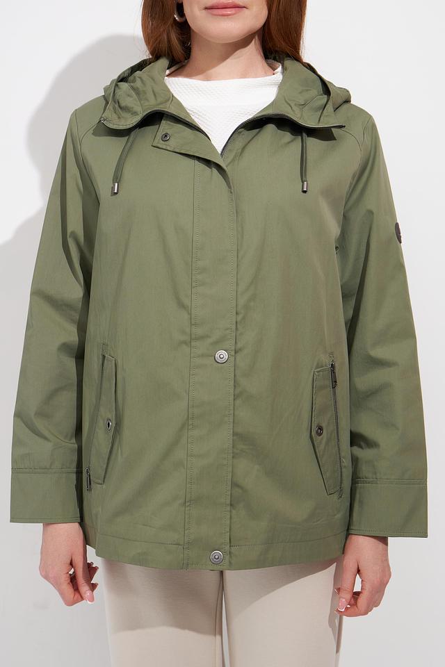 Женская куртка Lebek цвета хаки с капюшоном и яркой подкладкой. Модель выполнена из хлопка с добавлением полиамида, что обеспечивает комфорт и практичность. Куртка имеет удобный крой и станет отличным дополнением к вашему гардеробу. Состав: хлопок 73%, полиамид 27%