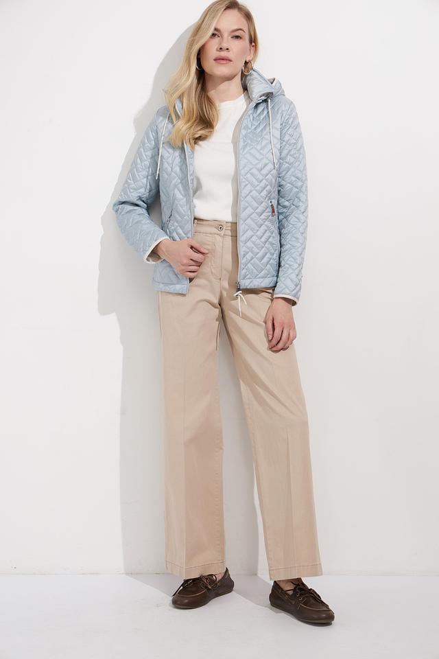 Эта куртка от Lebek выполнена в нежном голубом цвете и имеет стеганую текстуру, которая придает ей современный вид. Куртка застегивается на молнию и дополнена капюшоном, обеспечивающим дополнительную защиту от ветра и непогоды.