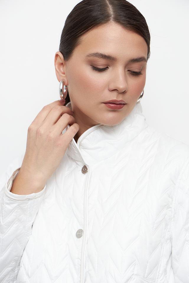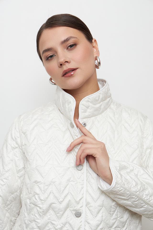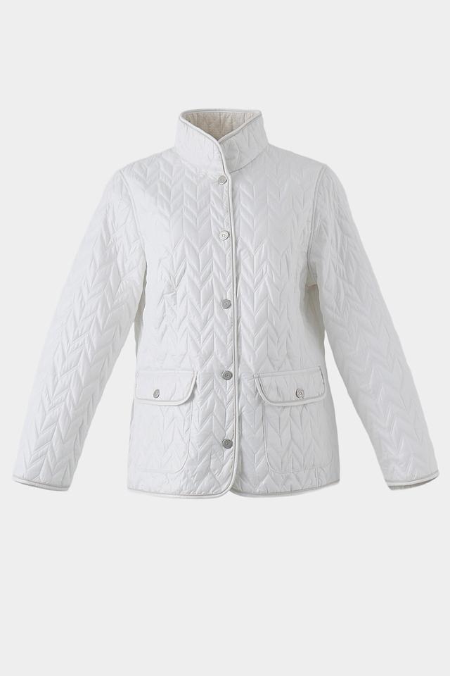 Эта стильная куртка от Lebek станет отличным выбором для создания модных и комфортных образов. Куртка выполнена в белом цвете и имеет стеганую текстуру, которая придает ей особый шарм.