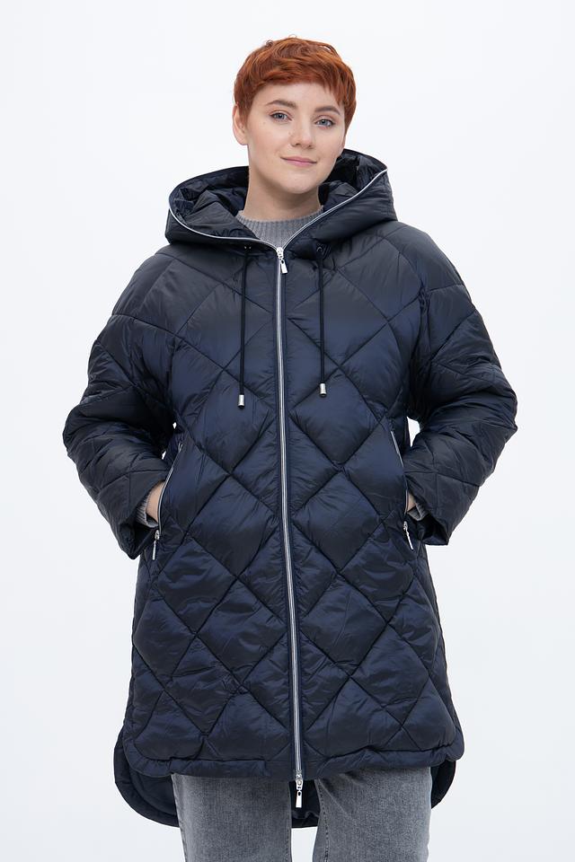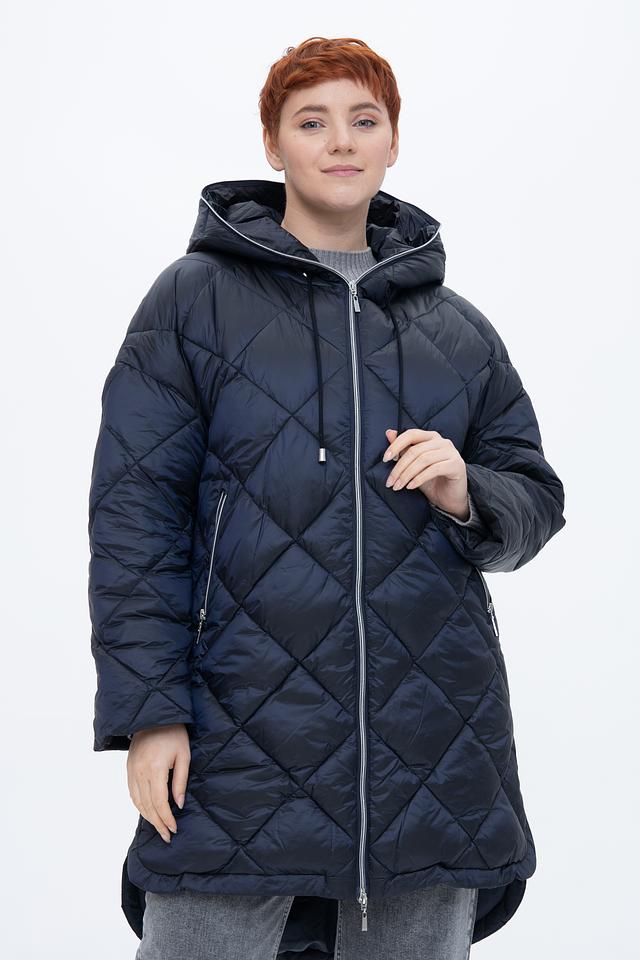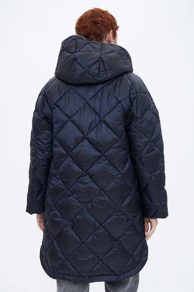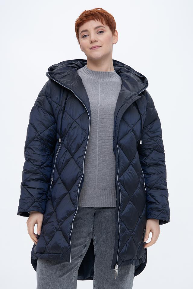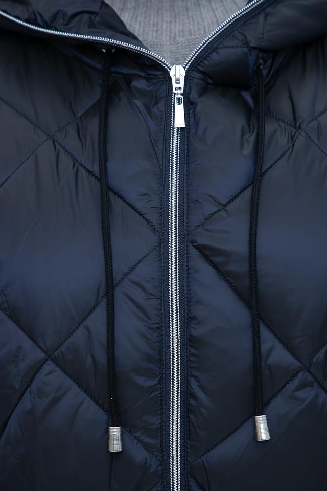 Стильное пальто Baronia тёмно-синего цвета выполнено в технике стежки. Модель с капюшоном и застежкой-молнией имеет удобные боковые карманы и асимметричный низ. Идеальный выбор для прохладной погоды. Состав: полиамид 52%, полиэстер 48%