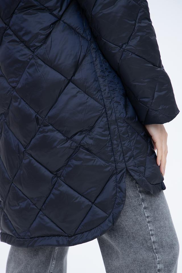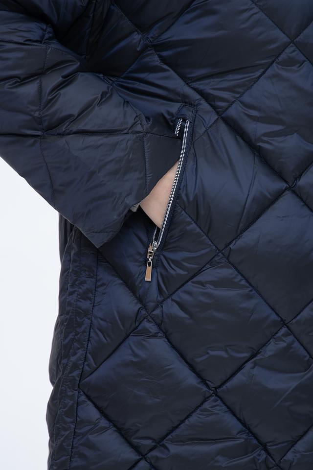 Пальто Baronia – это элегантное и практичное решение для создания стильного образа в холодное время года. Данная модель выполнена в тёмно-синем цвете и отличается оригинальной стежкой ромбовидной формы, придающей изделию современный вид.