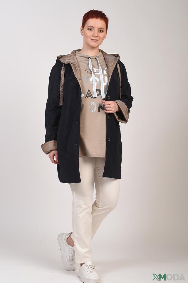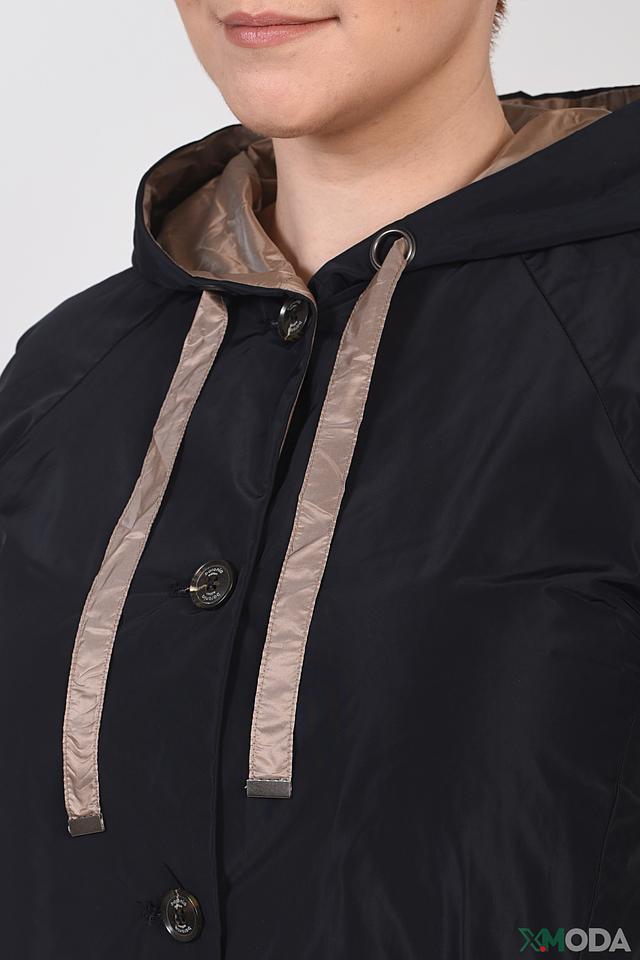 Плащ имеет удобный капюшон, который защитит вас от ветра и дождя. Отделка капюшона и манжет выполнена в бежевом цвете, что придает модели особый шарм.