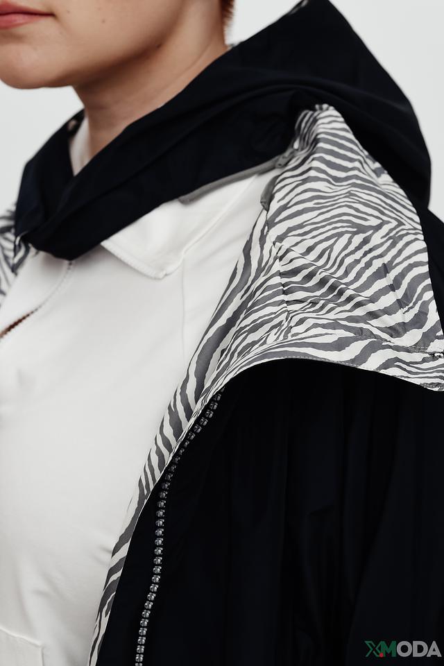 Чёрная куртка Baronia с капюшоном и принтом "зебра" – стильное и практичное решение для переменчивой погоды. Модель выполнена из 100% полиэстера, обеспечивающего защиту от ветра и влаги. Состав: полиэстер 100%