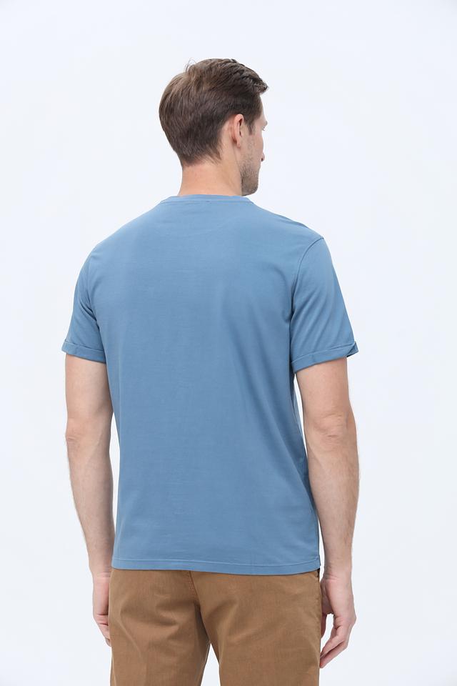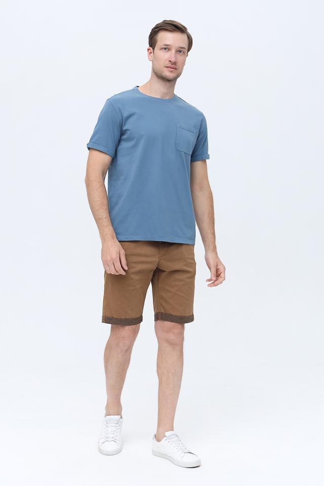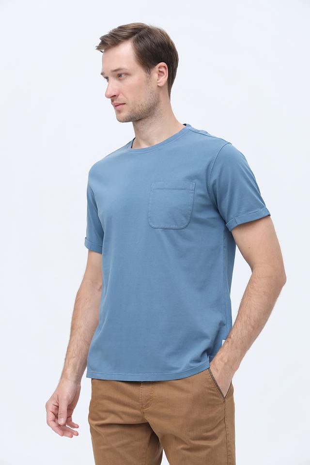 Футболка имеет прямой крой, короткий рукав и круглый вырез горловины. Нагрудный карман добавляет функциональности и стиля. Ткань приятна на ощупь и хорошо держит форму.