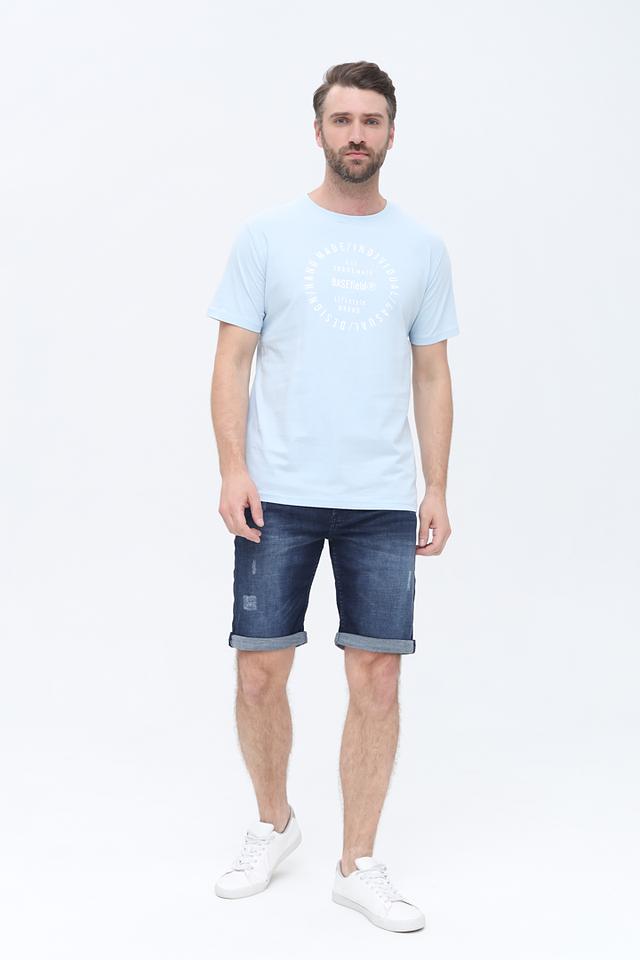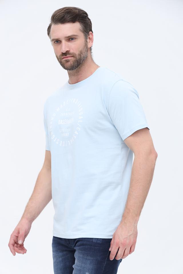 Голубая футболка Basefield из 100% хлопка с круглым вырезом и оригинальным принтом на передней части. Эта модель станет отличным дополнением к вашему повседневному гардеробу, обеспечивая комфорт и стиль. Состав: хлопок 100%