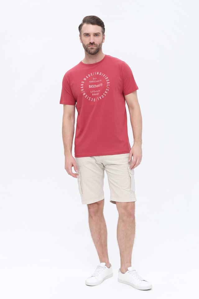 Мужская футболка Basefield терракотового цвета с круглым вырезом и оригинальным графическим принтом. Изготовлена из 100% хлопка, обеспечивающего комфорт и воздухопроницаемость. Состав: хлопок 100%