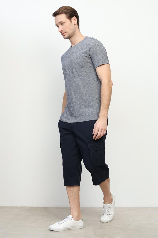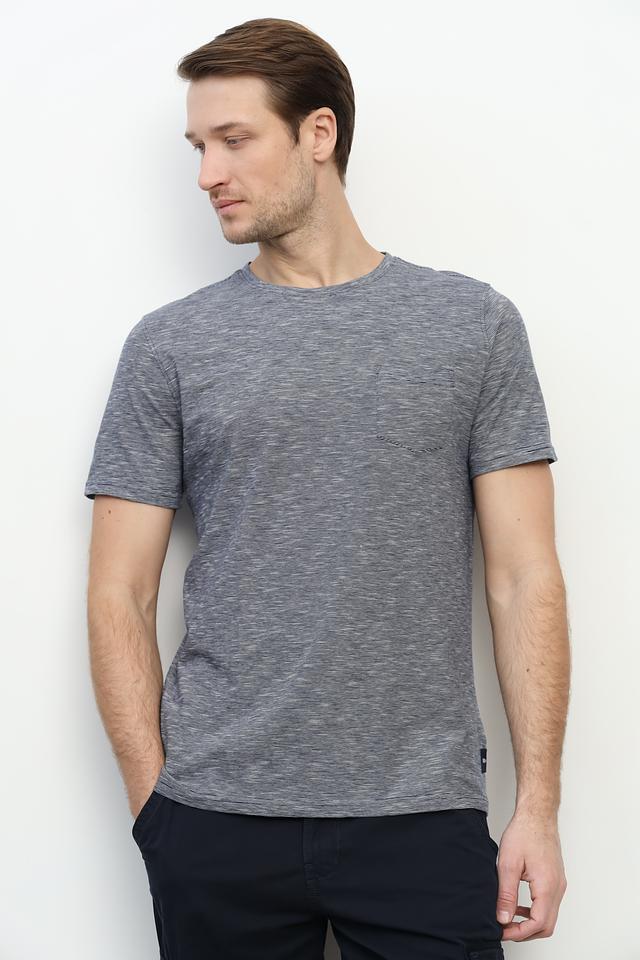 Особенностью данной модели является её меланжевая текстура, придающая ей стильный и современный вид. Круглый вырез горловины и короткие рукава делают футболку удобной для ношения в теплую погоду. На груди расположен небольшой накладной карман.