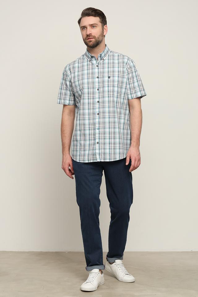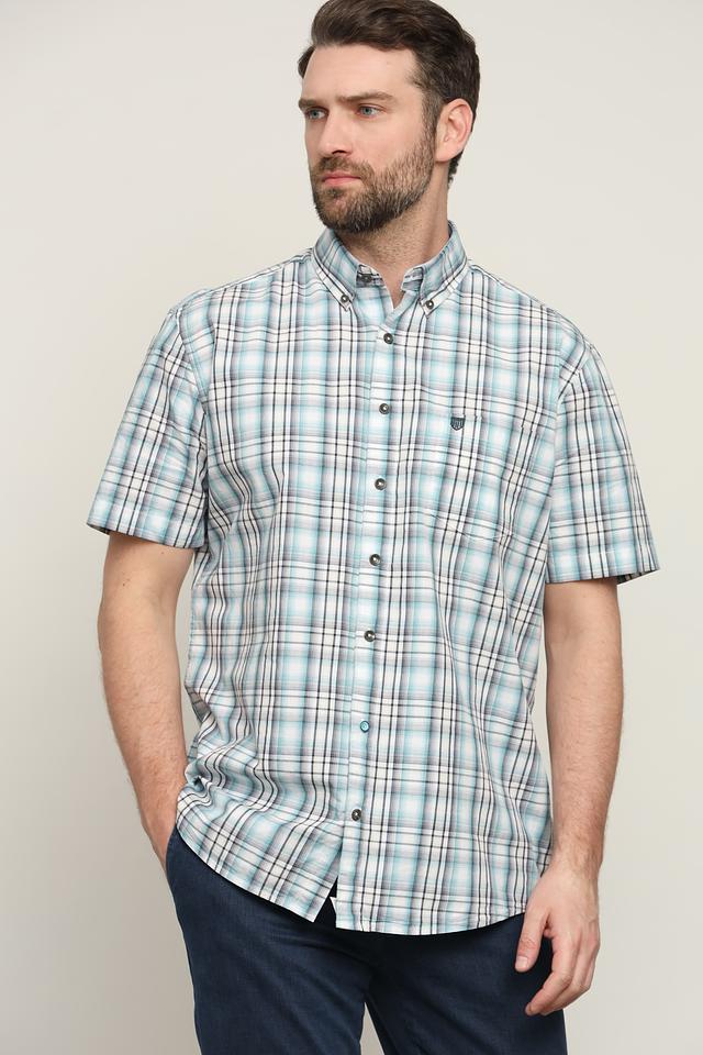 Рубашка имеет короткий рукав, что делает ее идеальной для теплой погоды. Воротник рубашки выполнен в классическом стиле. Застежка на пуговицах обеспечивает надежную фиксацию.