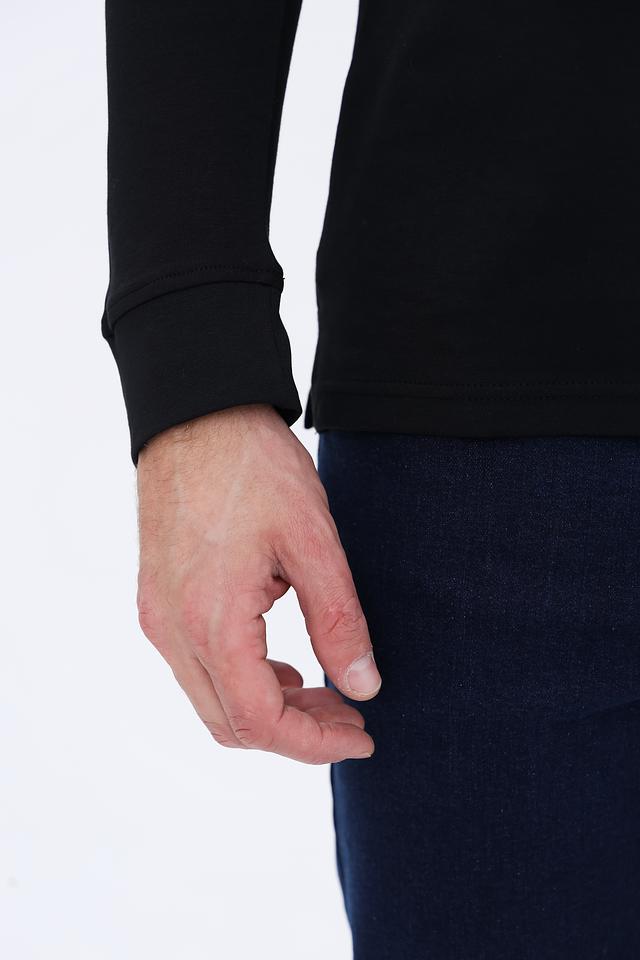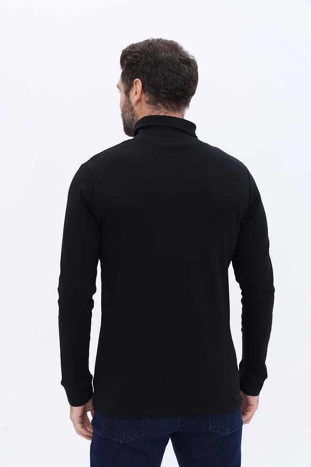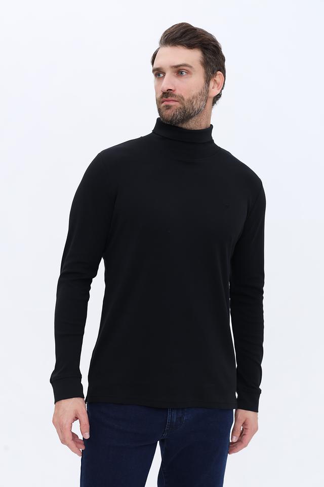 Классический чёрный цвет делает эту водолазку универсальной и легко сочетаемой с другими элементами гардероба. Прямой крой обеспечивает свободу движений, а эластичный трикотаж плотно прилегает к телу, сохраняя форму.