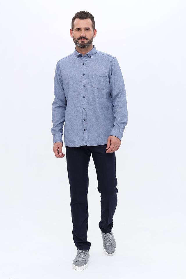 Рубашка имеет классический крой, длинные рукава и удобную застежку на пуговицы. Голубой цвет и текстурированная ткань придают ей стильный и современный вид. На груди расположен накладной карман.