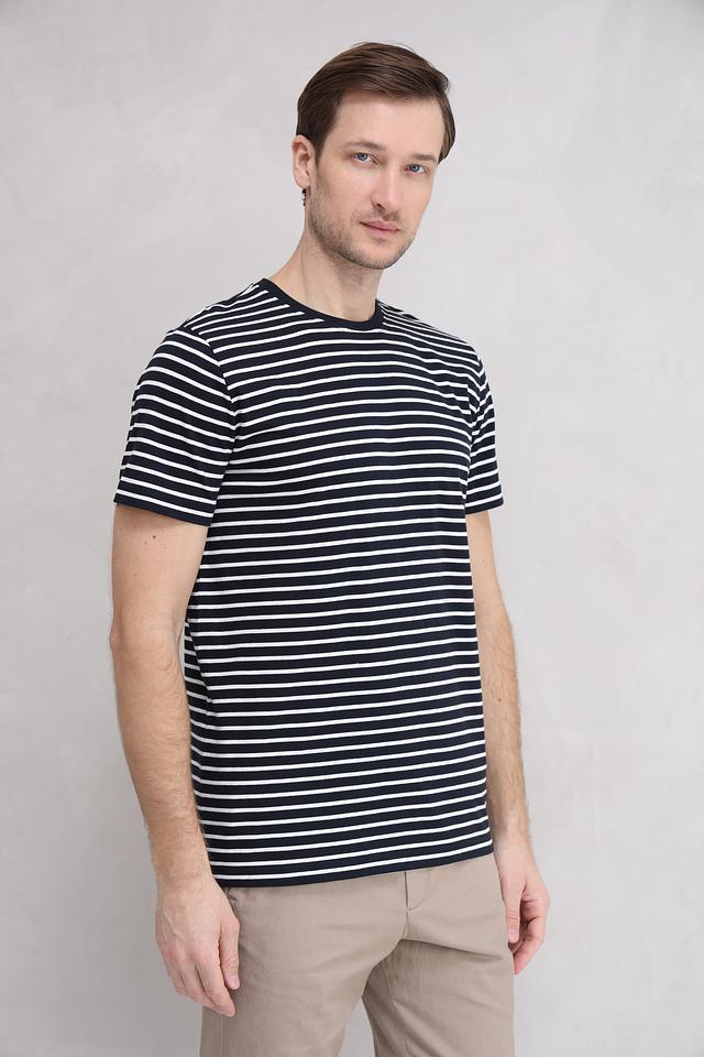 Мужская футболка Basefield синего цвета с классическим полосатым дизайном. Изготовлена из 100% хлопка, обеспечивающего комфорт и воздухопроницаемость. Отличный выбор для повседневного образа. Состав: хлопок 100%