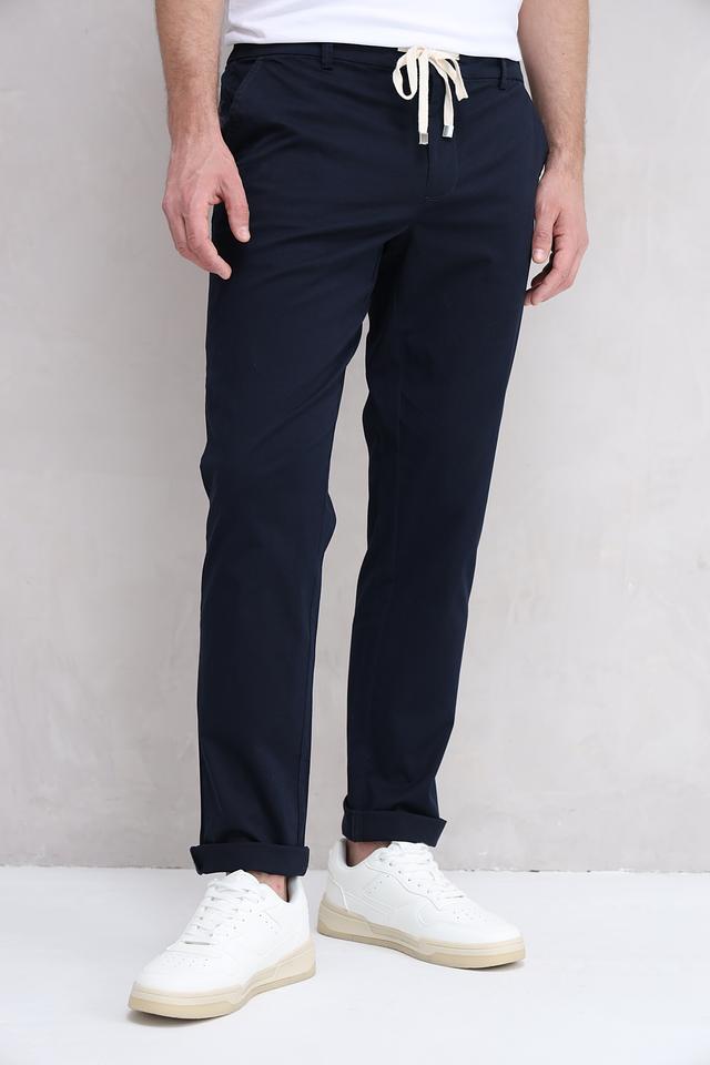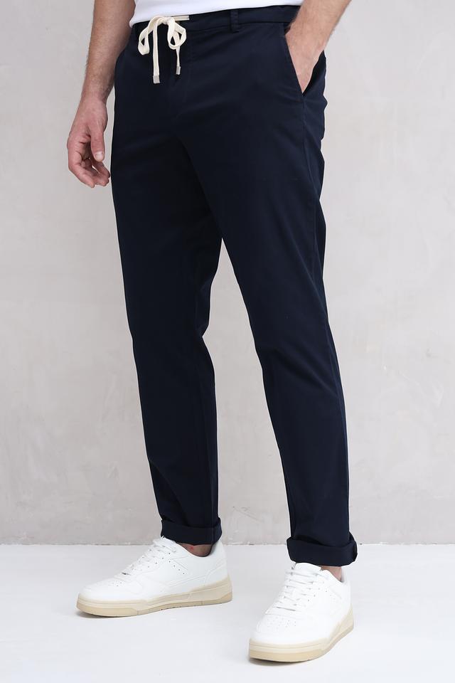 Мужские брюки Basefield темно-синего цвета – это удобная и стильная модель с эластичным поясом и шнурком для регулировки. Идеальный выбор для повседневной носки, сочетающий комфорт и современный дизайн. Состав: хлопок 98%, эластан 2%