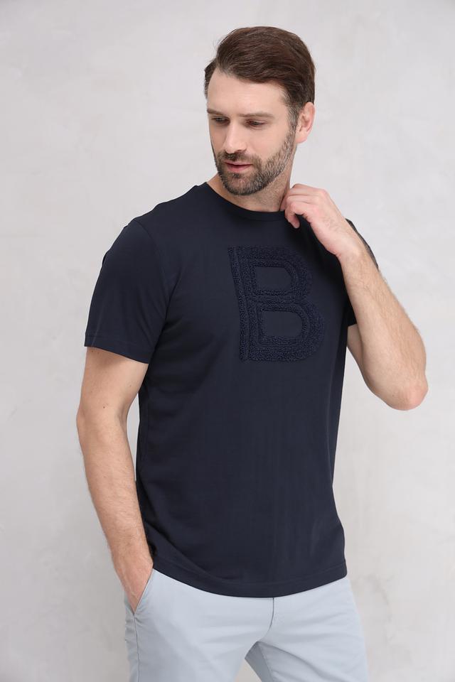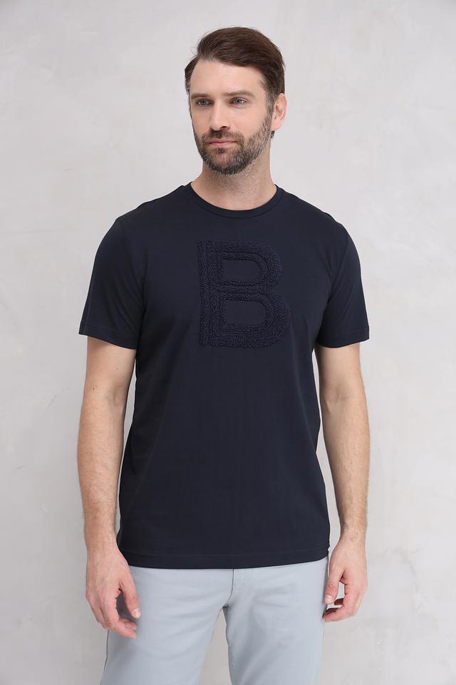 Мужская футболка Basefield тёмно-синего цвета с рельефным логотипом "B" на груди. Изготовлена из 100% хлопка, обеспечивающего комфорт и воздухопроницаемость. Состав: хлопок 100%