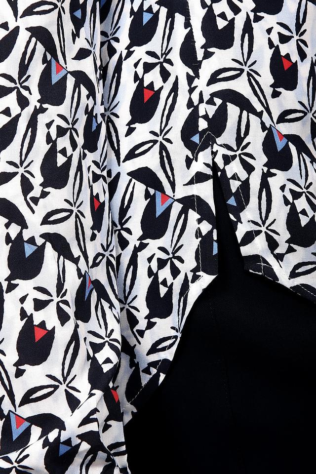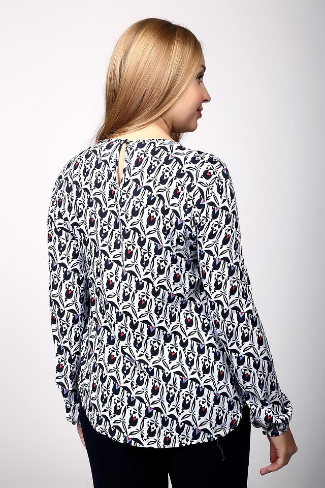 Особенностью данной модели является яркий цветочный принт, который придает ей неповторимый шарм. Блуза имеет свободный крой, который не сковывает движений и позволяет создать расслабленный силуэт. Длинные рукава с небольшими манжетами добавляют образу изысканности.