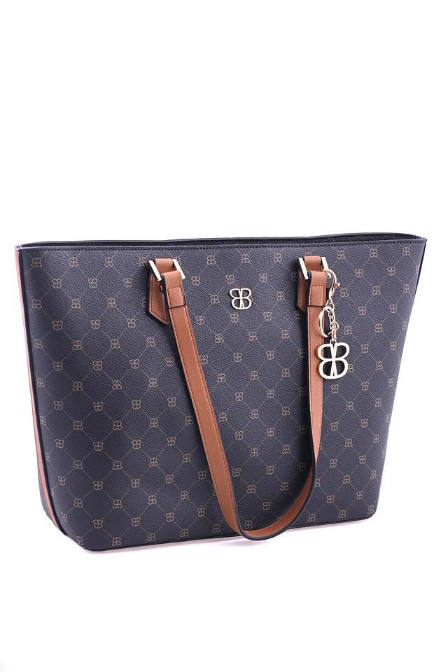 Стильная сумка от Basler чёрного цвета с коричневыми ручками и логотипом бренда. Модель выполнена из полиуретана и отличается практичным дизайном и вместительностью. Состав: полиуретан 100%