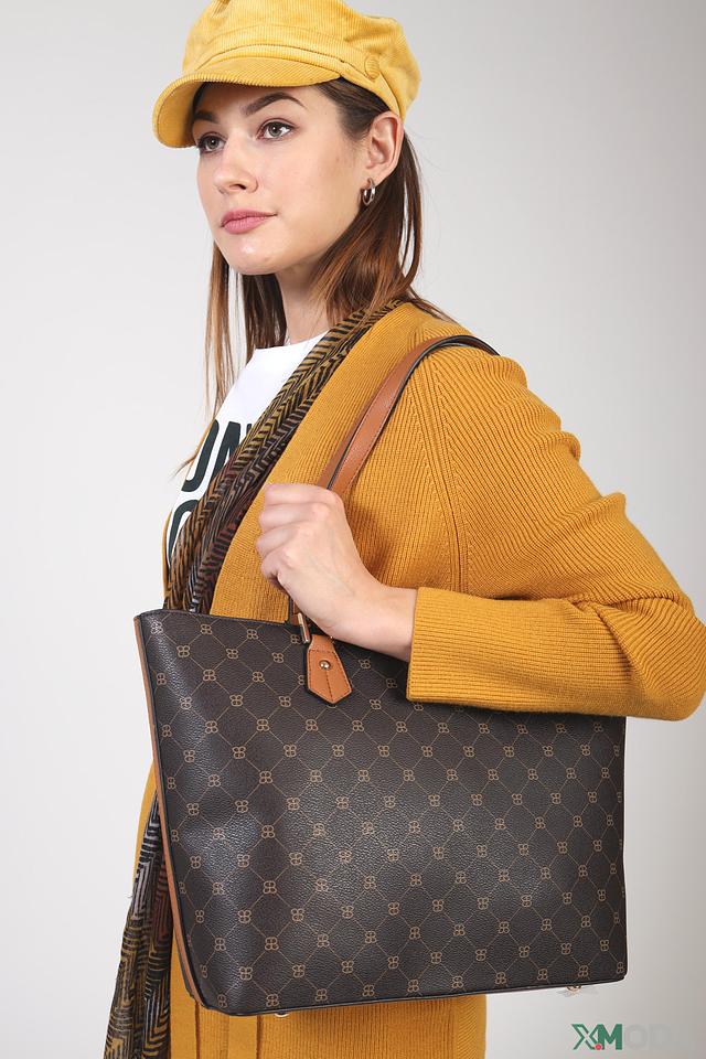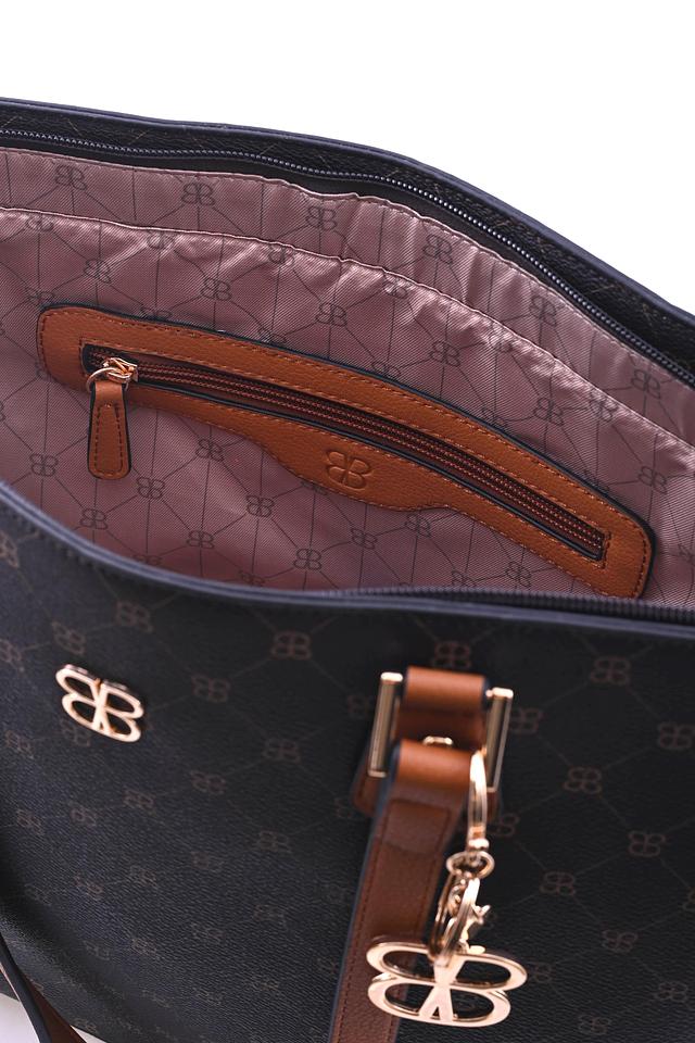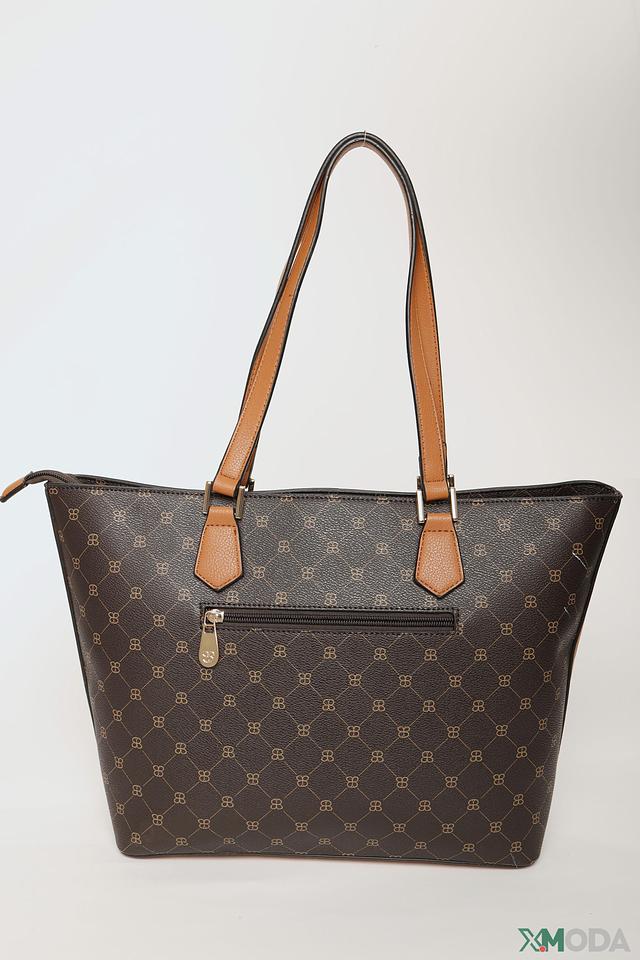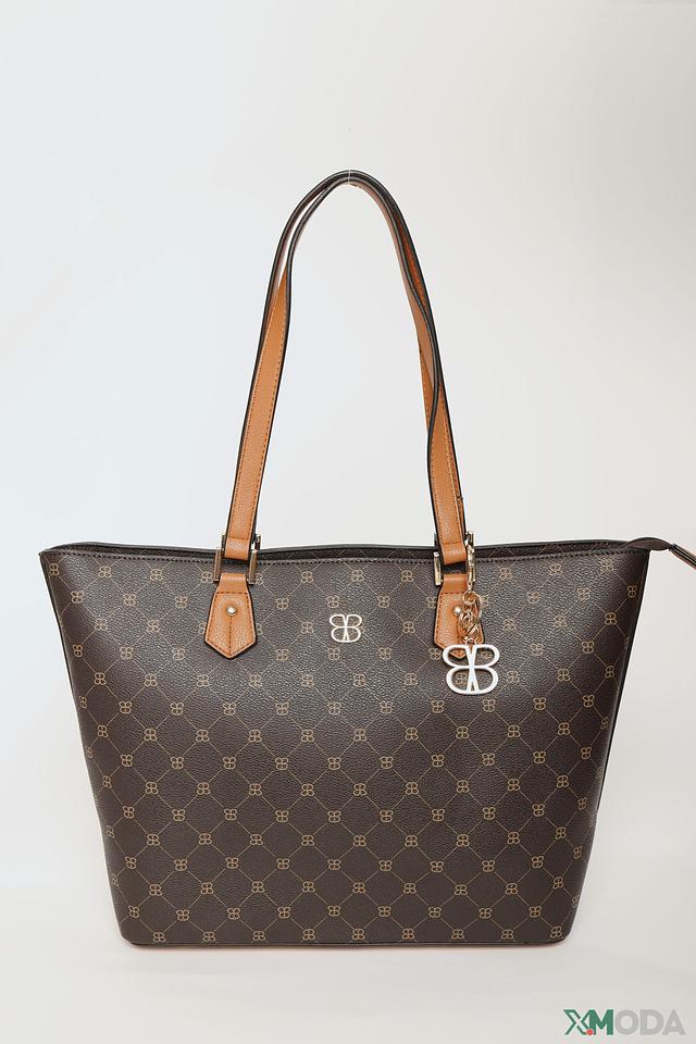Основной цвет сумки – чёрный, что делает её универсальной и подходящей к любому образу. Коричневые ручки и отделка добавляют контраста и изысканности. На передней панели сумки расположен логотип бренда, подчеркивающий её принадлежность к премиальному сегменту.
