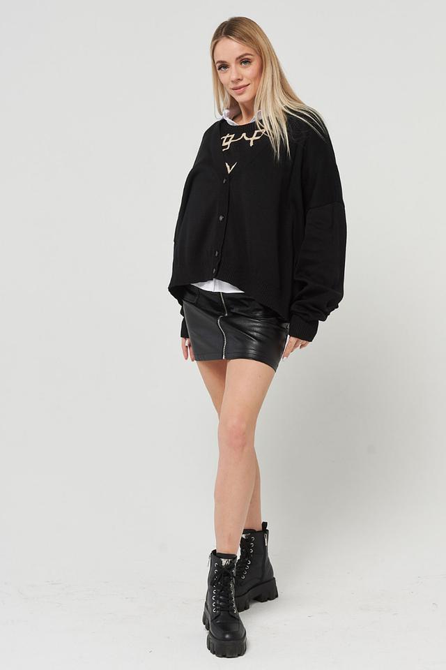 Чёрный кардиган от BE YOU с оригинальным принтом — стильное и комфортное решение для создания модных образов. Модель выполнена из мягкого трикотажа и имеет свободный крой, что обеспечивает удобную посадку по фигуре. Состав: