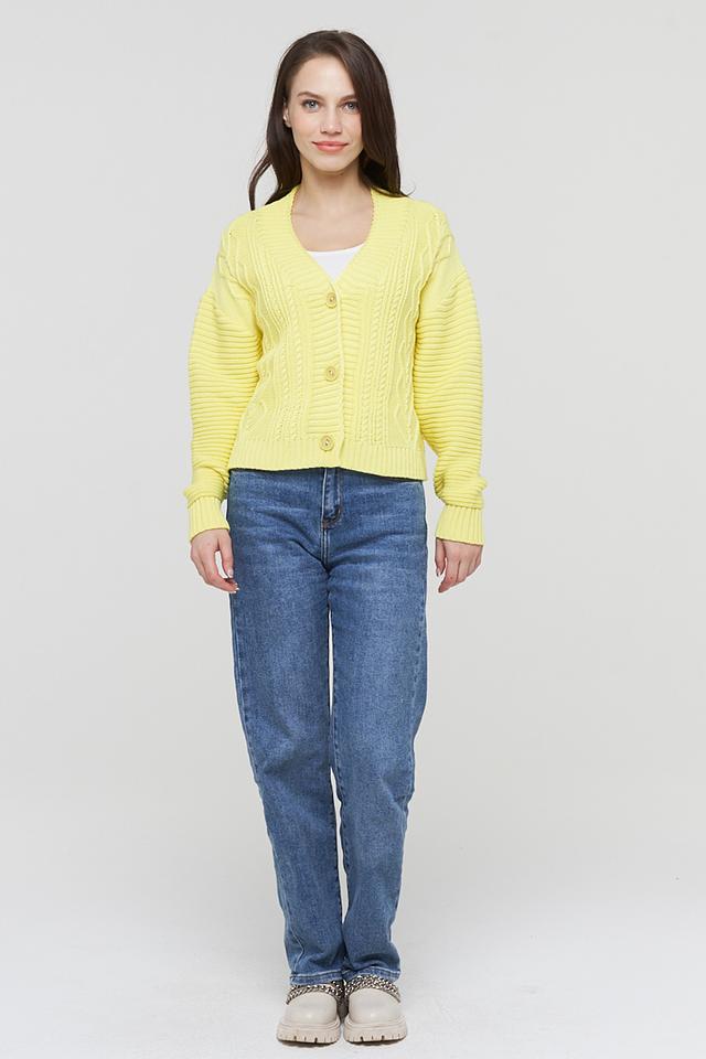 Женский кардиган BE YOU лимонного цвета выполнен из мягкого трикотажа с косами. Удобный и стильный выбор для создания уютных образов в прохладную погоду. Состав: хлопок 50%, пан 50%