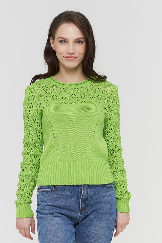 Женский джемпер BE YOU лаймового цвета с ажурным узором станет стильным дополнением к вашему гардеробу. Модель выполнена из мягкого и приятного к телу сочетания хлопка и пан, обеспечивая комфорт в носке. Состав: хлопок 50%, пан 50%
