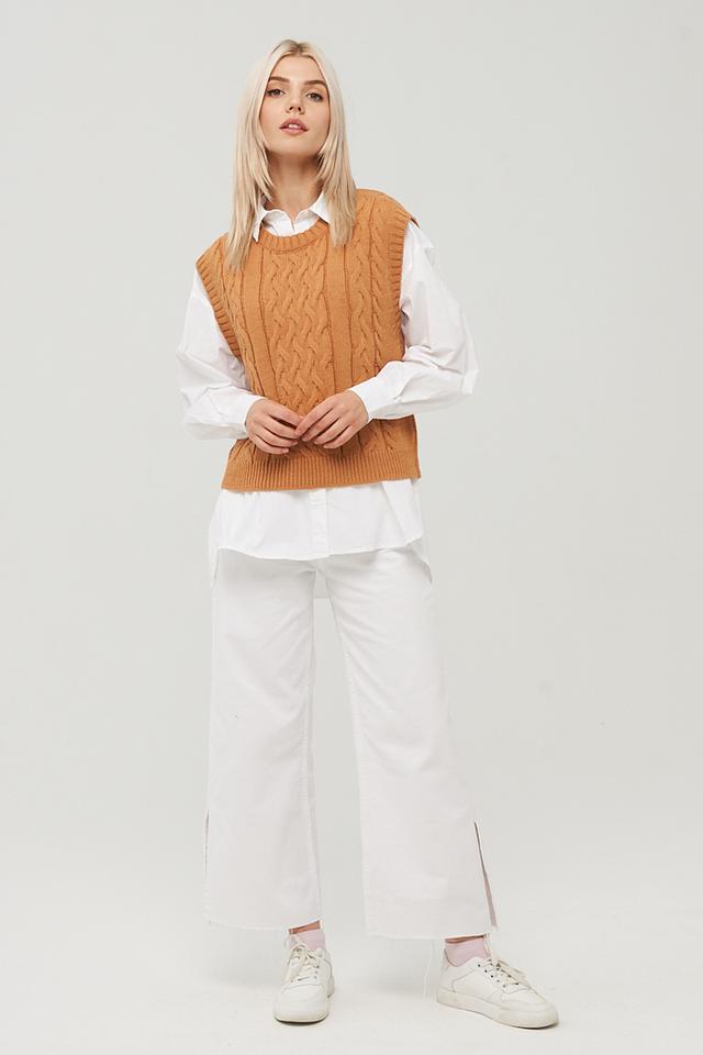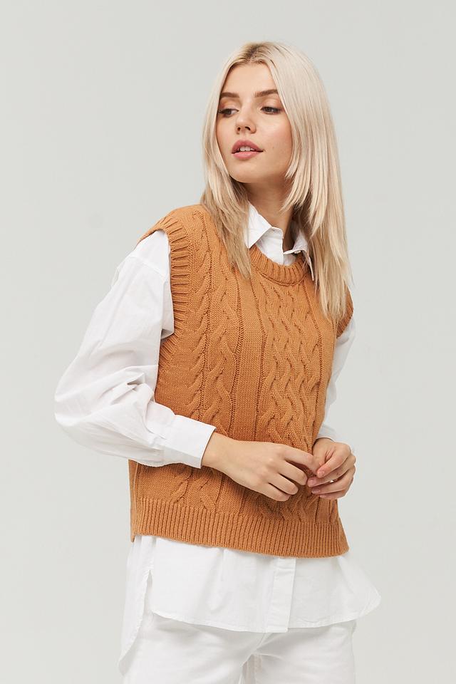 Этот жилет от BE YOU станет отличным дополнением к вашему гардеробу. Он выполнен в горчичном цвете и имеет классический вязаный дизайн с косами.