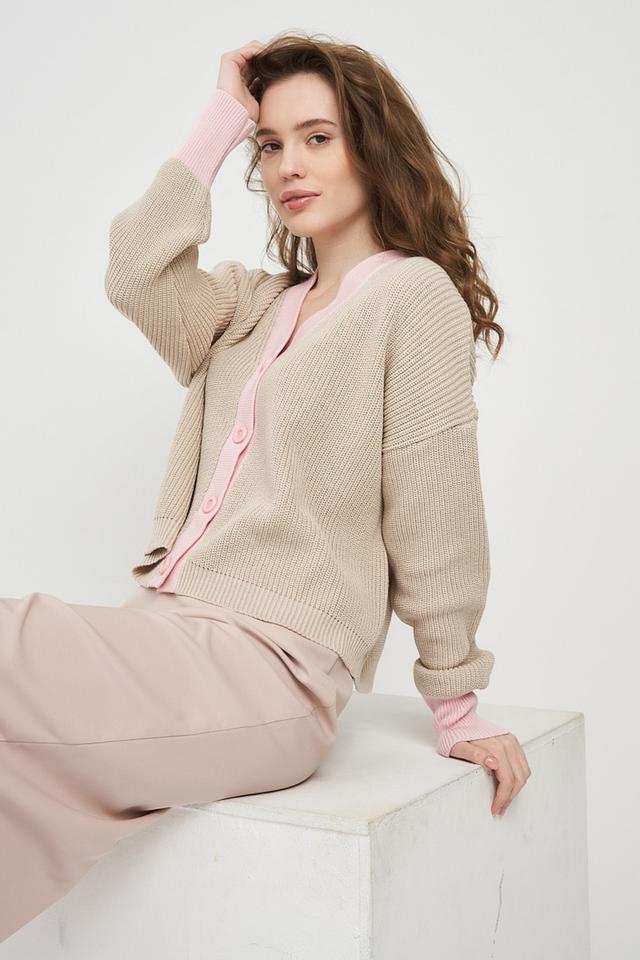 Кардиган BE YOU с розовой отделкой бежевый