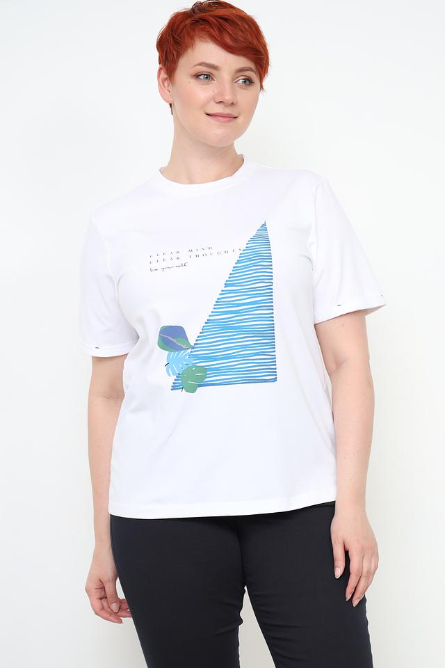 Белая футболка Be Yourself с оригинальным принтом в виде абстрактного пейзажа. Изготовлена из мягкого и приятного к телу сочетания хлопка, модала и эластана, обеспечивающего комфорт при носке. Состав: хлопок 47%, модал 46%, эластан 7%