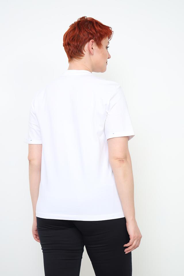 Футболка имеет классический прямой крой, короткие рукава и круглый вырез горловины. Она идеально подходит для повседневной носки и легко сочетается с различными элементами одежды, такими как джинсы, шорты, юбки и брюки. Благодаря своему универсальному дизайну, эта футболка станет незаменимой вещью в вашем гардеробе.