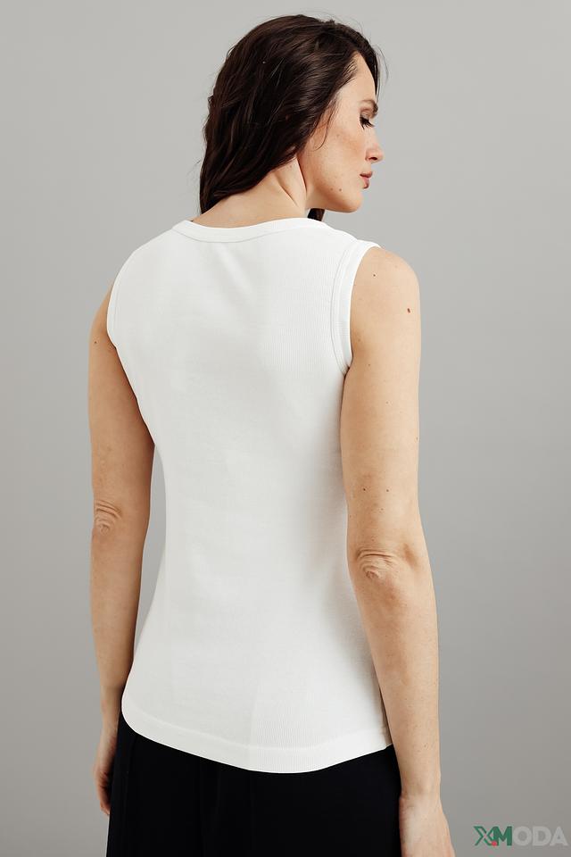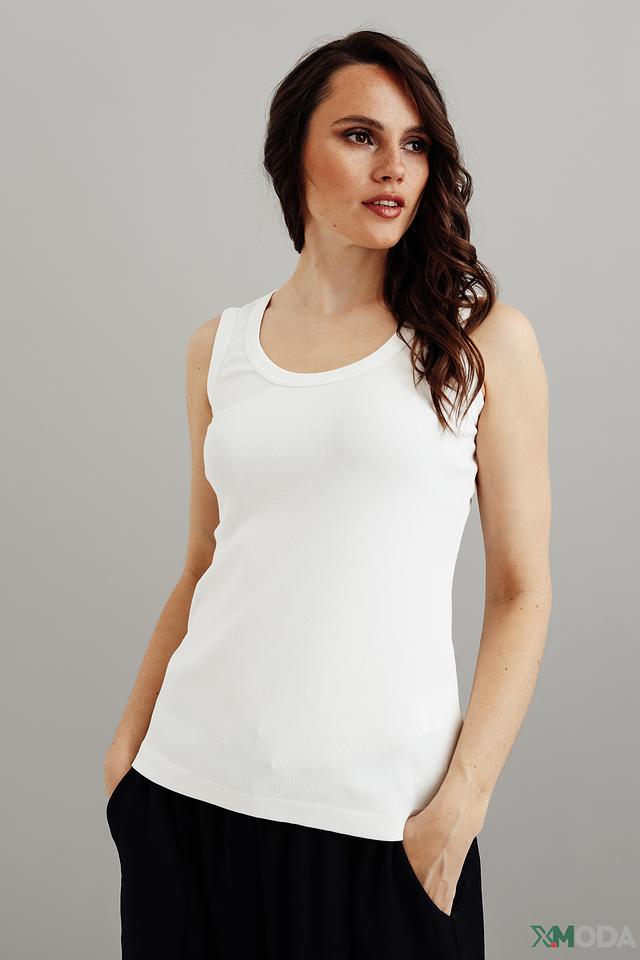 Топ имеет классический крой с широкими бретелями и округлым вырезом горловины. Его можно носить как самостоятельный элемент одежды, так и в качестве основы для многослойных образов. Белый цвет топа универсален и легко сочетается с другими вещами в вашем гардеробе.