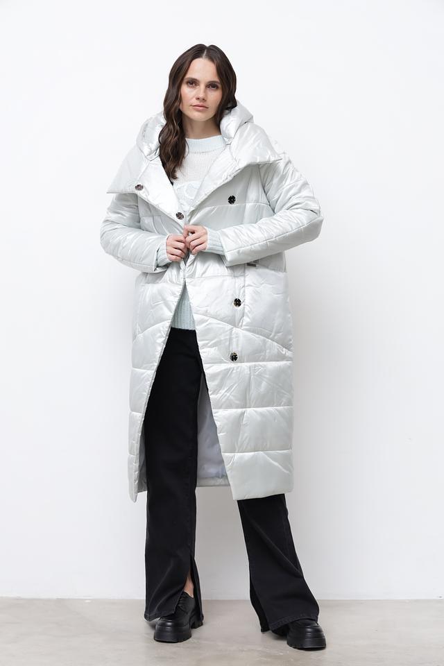 Стеганое пальто Beatris серебристого цвета – это стильное и теплое решение для прохладной погоды. Модель выполнена из 100% полиэстера, имеет удобный капюшон и застегивается на кнопки. Состав: полиэстер 100%, Состав_подкладка полиэстер 100%