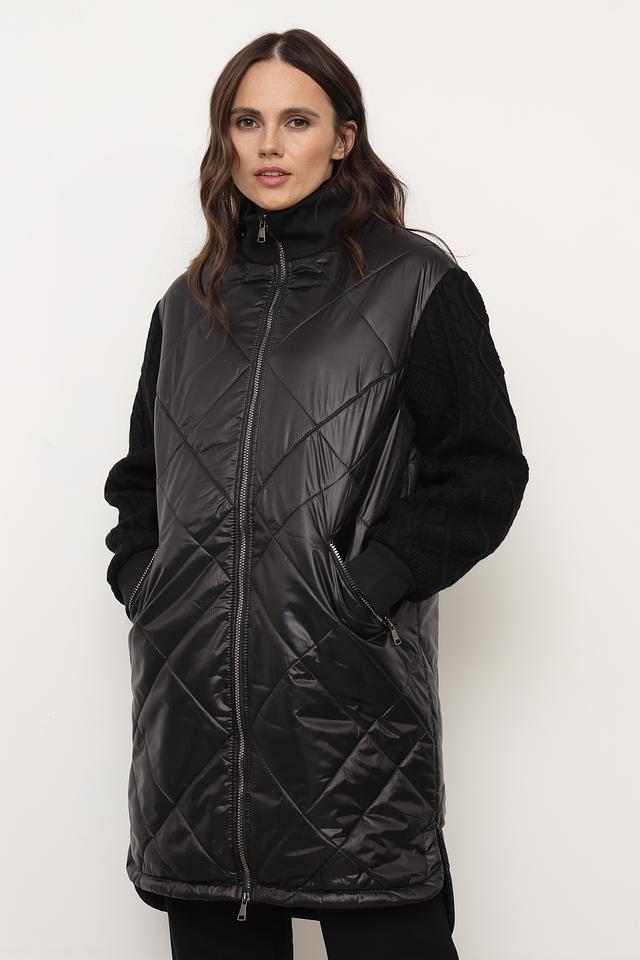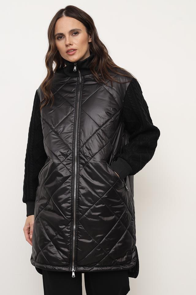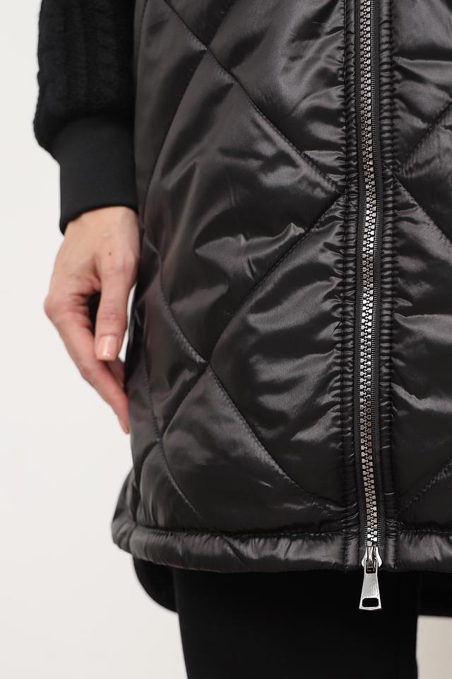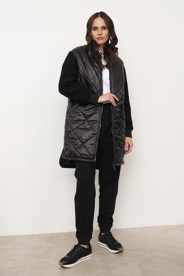 Стильное пальто-жилет Beatris чёрного цвета выполнено из стеганой ткани с воротником-стойкой и рукавами из трикотажа. Модель застегивается на молнию и имеет боковые карманы. Состав: полиэстер 100%, Состав_подкладка полиэстер 70%, Состав_подкладка вискоза 30%