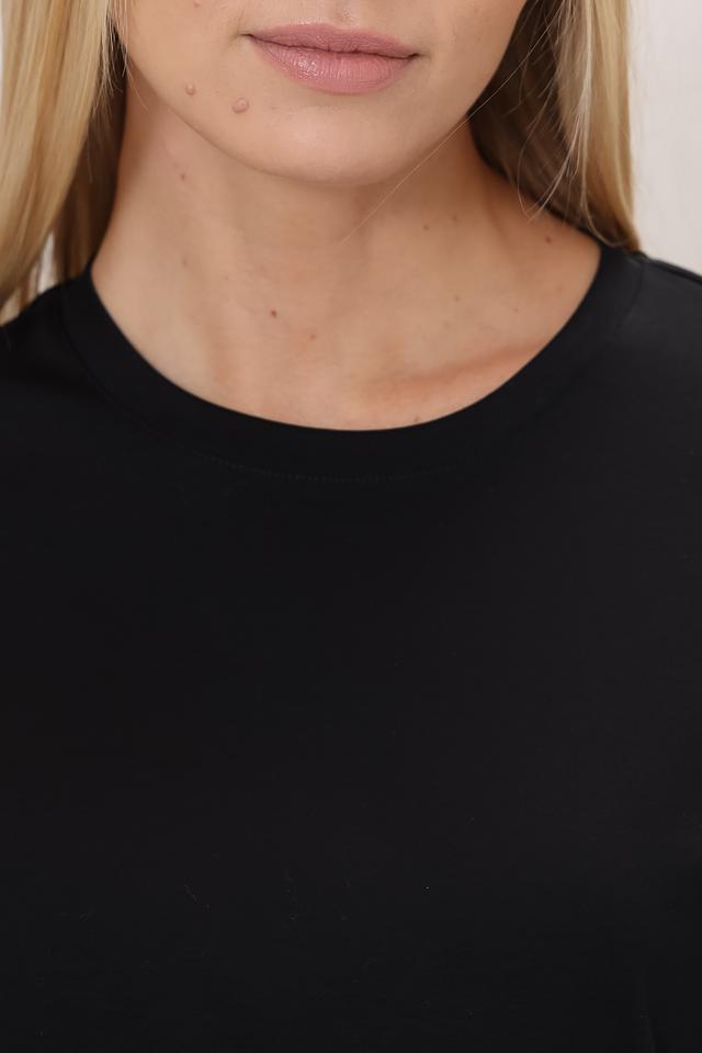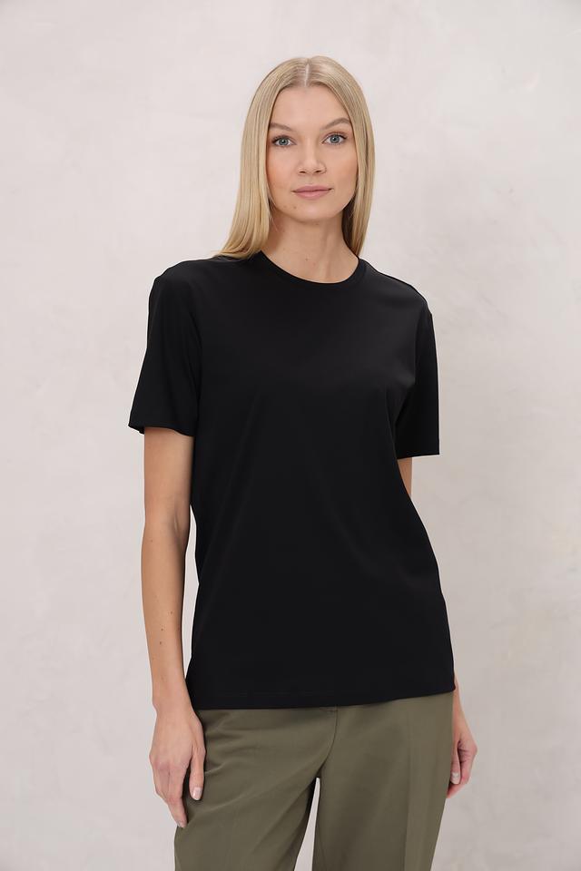 Чёрная футболка Beatris — это базовая модель из мягкого и приятного к телу трикотажа. Классический крой и лаконичный дизайн делают её универсальным элементом гардероба. Состав: хлопок 55%, тенсель 35%, шелк 10%