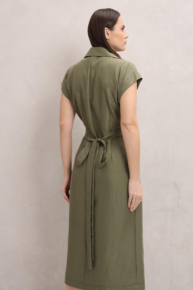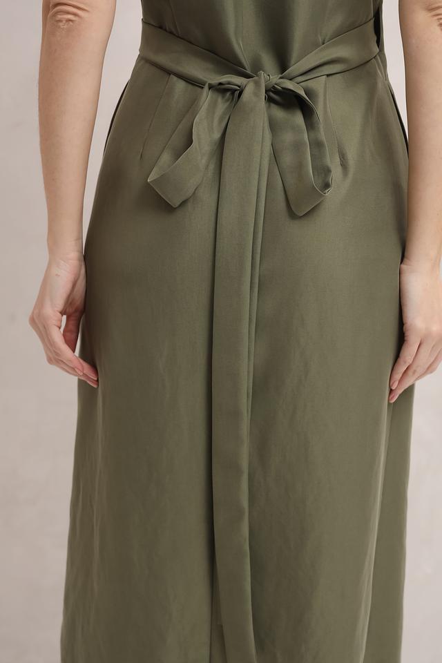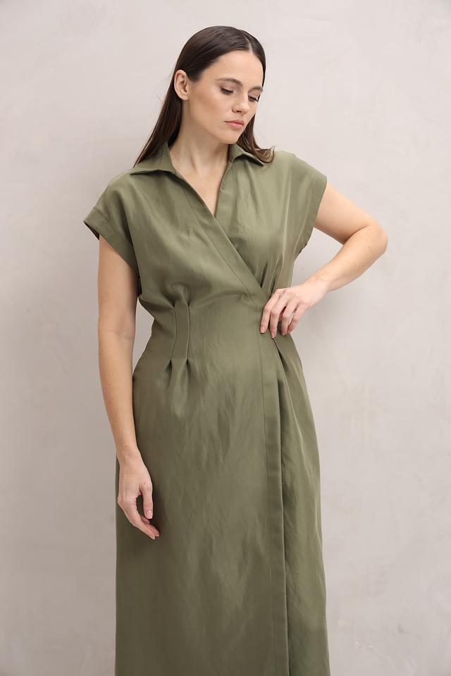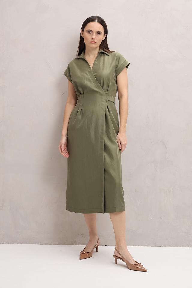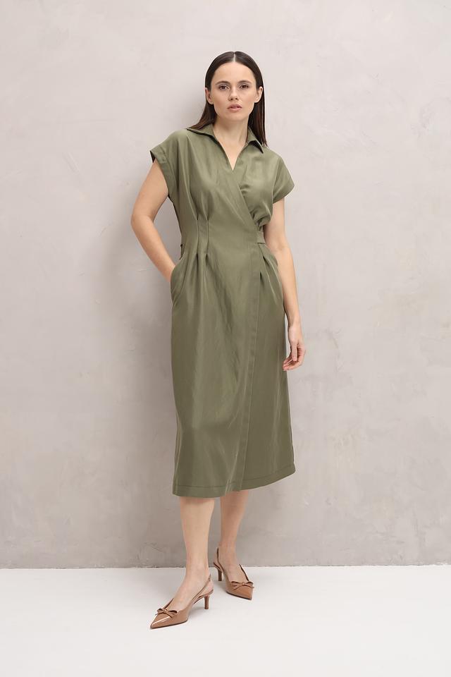 Платье оливкового цвета станет отличным дополнением к вашему гардеробу. Оно идеально подойдет для создания как повседневных, так и более формальных образов. Сочетайте его с туфлями на каблуке или сандалиями для завершения стильного лука.