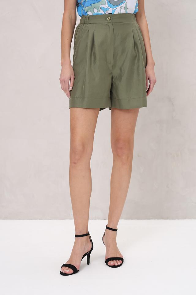 Шорты Beatris цвета хаки — стильная и удобная модель с высокой посадкой и декоративными складками. Изготовлены из сочетания полиамида и вискозы, обеспечивающих комфорт и практичность. Состав: полиамид 70%, вискоза 30%